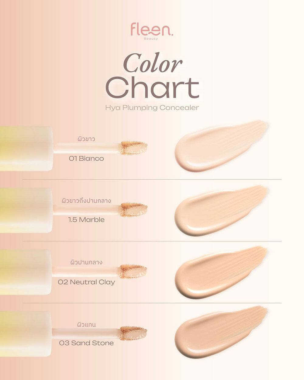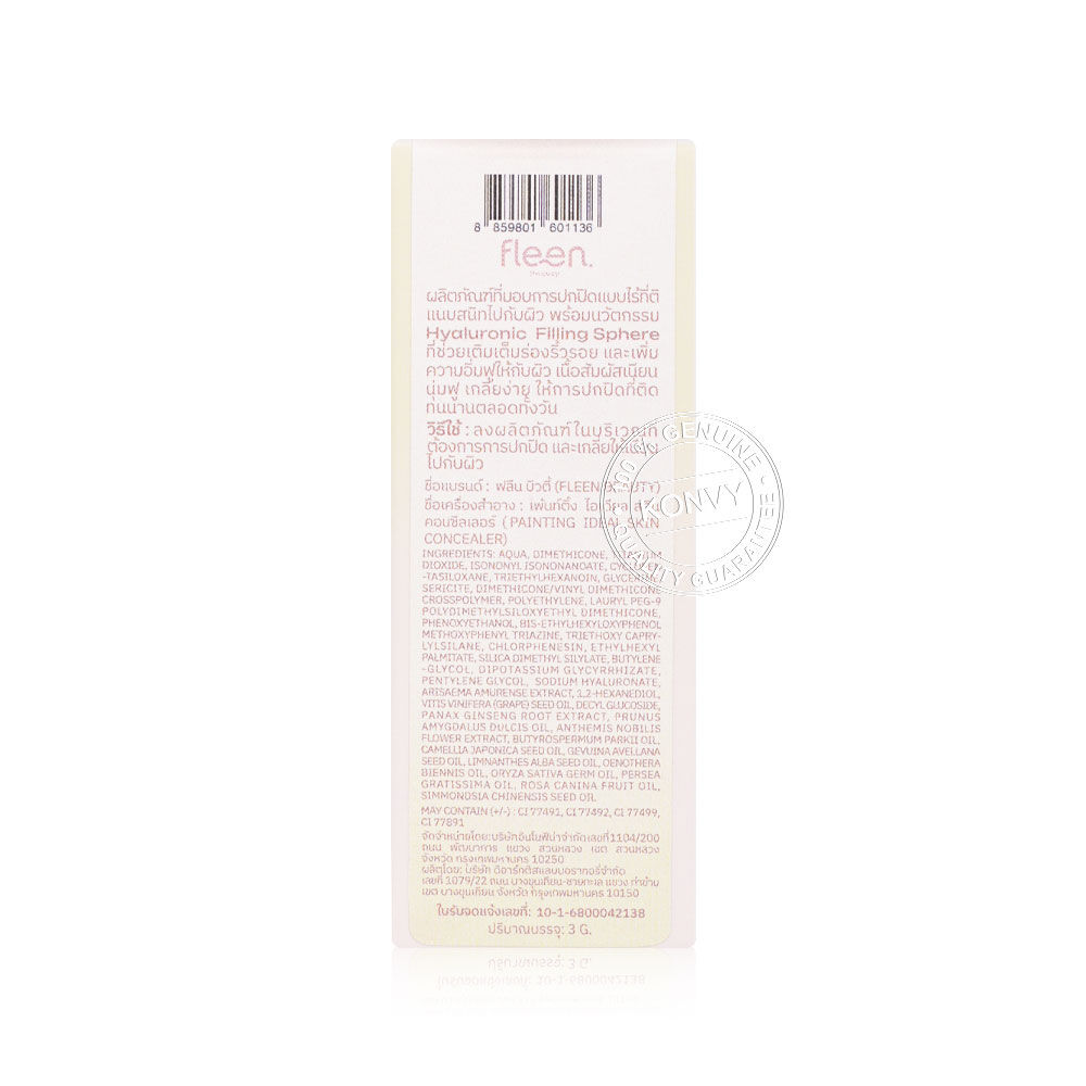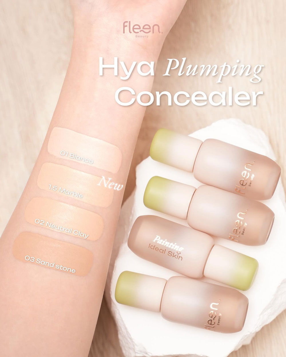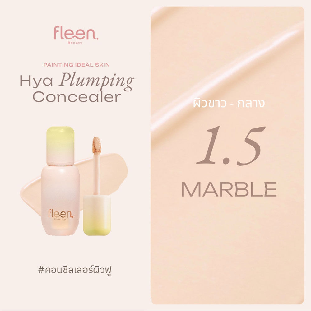 Fleen Beauty Hya Plumping Concealer 3g #1.5 Marble คอนซีลเลอร์ เนื้อนุ่มลื่นดุจแพรไหม เกลี่ยง่าย แนบสนิทไปกับผิว ไม่ตกร่อง กันน้ำ กันเหงื่อ ติดทนตลอดวัน ด้วยสารสกัดนวัตกรรมใหม่ Hyaluronic Filling Sphere ช่วยปกปิดริ้วรอยและความหมองคล้ำ พร้อมเพิ่มความชุ่มชื้นให้ผิว มอบฟินิชผิวสวยอิ่มฟู แบบไร้ที่ติ