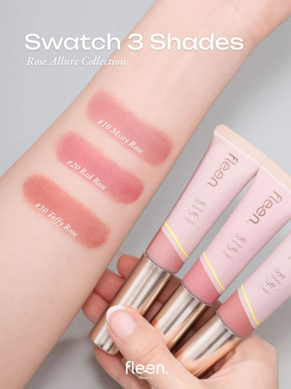 Fleen Beauty Soft Velvet Fluffy Cheek 10g #30°C Toffee Rose บลัชออนนวัตกรรมใหม่ Cream to Powder จากเนื้อครีมเปลี่ยนเป็นเนื้อแป้งที่บางเบา เกลี่ยง่ายสบายผิว ไม่เป็นคราบ คุมมัน กันน้ำ กันเหงื่อ ติดทนนาน มอบฟินิชพวงแก้มดูฟุ้งละมุน เบลอสวย มาพร้อมคอนเซปต์สีจากกลีบดอกไม้ ไล่เฉดตามอุณหภูมิ จึงทำให้ได้สีสวย โดดเด่นเป็นธรรมชาติ ดูมีเอกลักษณ์