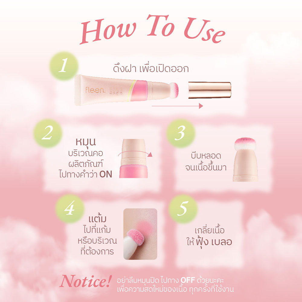 Fleen Beauty Soft Velvet Fluffy Cheek Blush On 10g #21°C Morning Glory บลัชออนนวัตกรรมใหม่ Cream to Powder จากเนื้อครีมเปลี่ยนเป็นเนื้อแป้งที่บางเบา เกลี่ยง่ายสบายผิว ไม่เป็นคราบ คุมมัน กันน้ำ กันเหงื่อ ติดทนนาน มอบฟินิชพวงแก้มดูฟุ้งละมุน เบลอสวย มาพร้อมคอนเซปต์สีจากกลีบดอกไม้ ไล่เฉดตามอุณหภูมิ จึงทำให้ได้สีสวย โดดเด่นเป็นธรรมชาติ ดูมีเอกลักษณ์