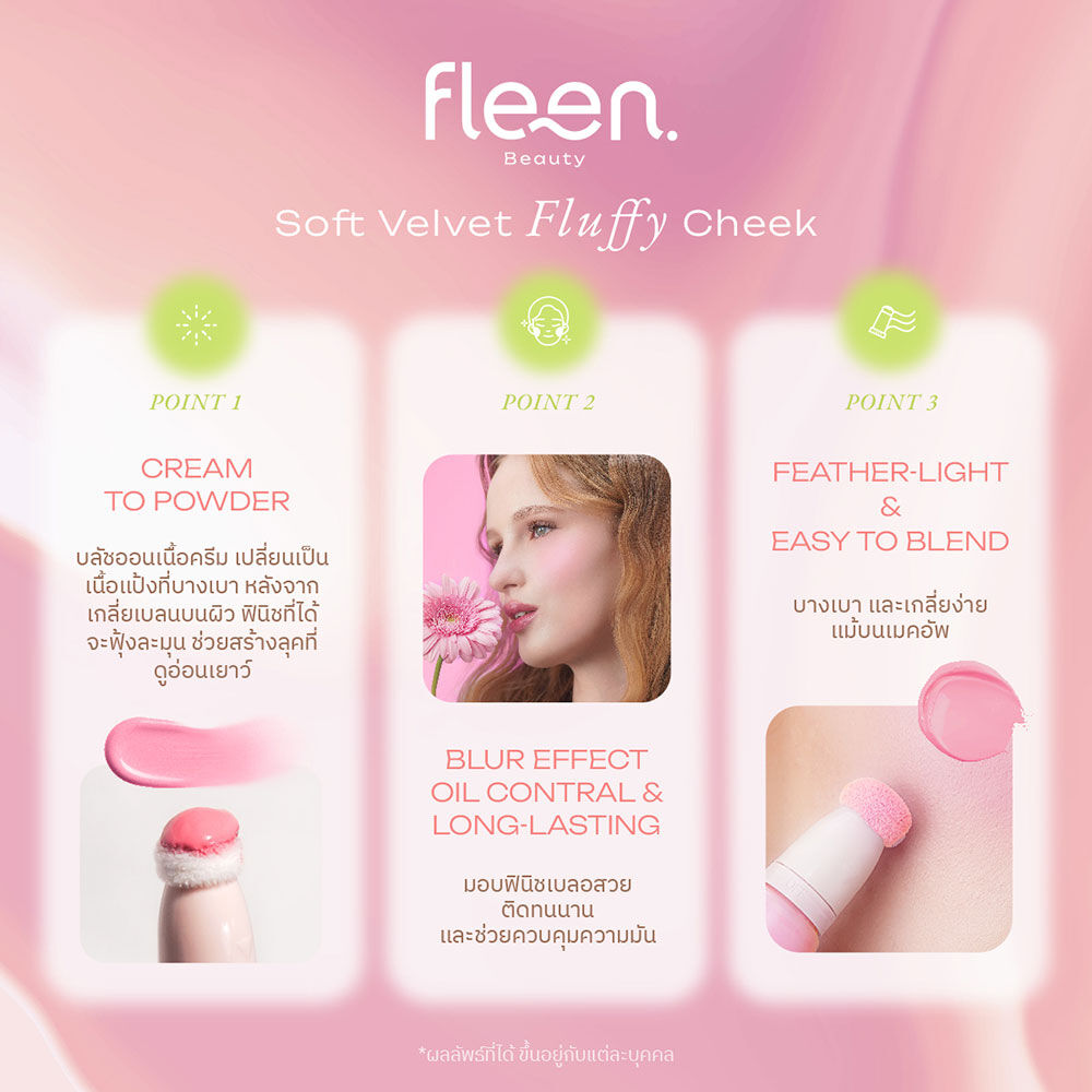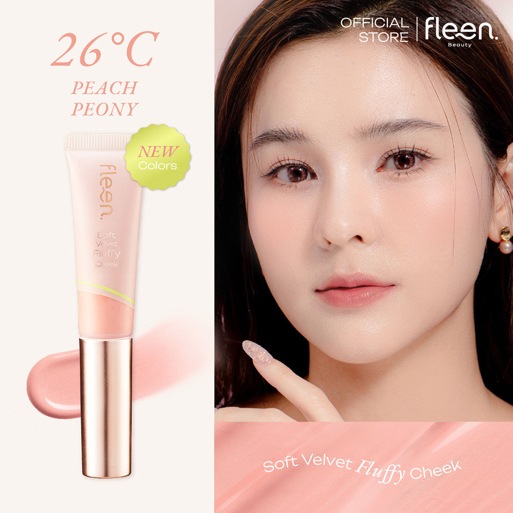 Fleen Beauty Soft Velvet Fluffy Cheek Blush On 10g #26°C Peach Peony บลัชออนนวัตกรรมใหม่ Cream to Powder จากเนื้อครีมเปลี่ยนเป็นเนื้อแป้งที่บางเบา เกลี่ยง่ายสบายผิว ไม่เป็นคราบ คุมมัน กันน้ำ กันเหงื่อ ติดทนนาน มอบฟินิชพวงแก้มดูฟุ้งละมุน เบลอสวย มาพร้อมคอนเซปต์สีจากกลีบดอกไม้ ไล่เฉดตามอุณหภูมิ จึงทำให้ได้สีสวย โดดเด่นเป็นธรรมชาติ ดูมีเอกลักษณ์