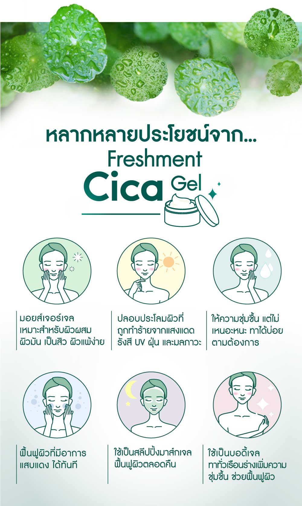 • ปลอบประโลมผิวแพ้ รอยแดง สิว พร้อมเติมความชุ่มชื้นให้ผิว
