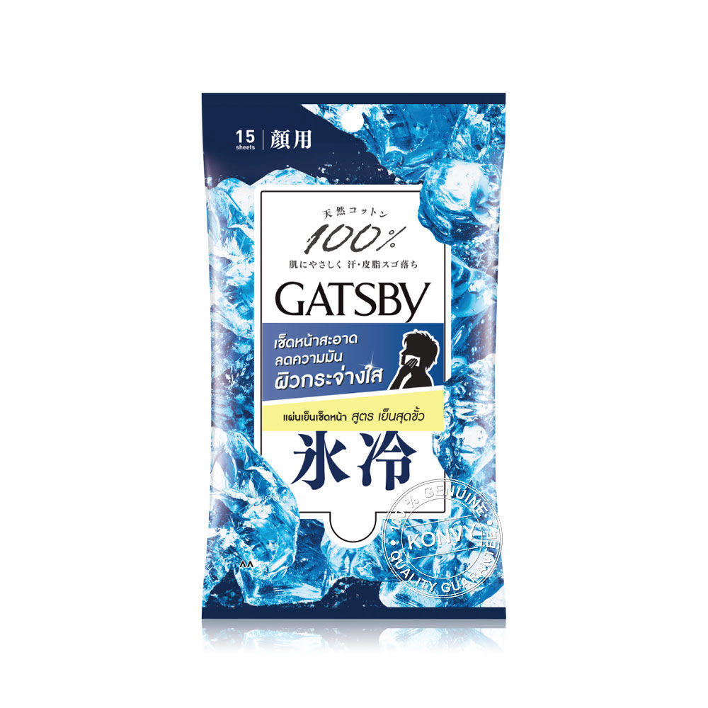 GATSBY Facial Wipes Ice Type 15 Sheets ผ้าเย็นเช็ดทำความสะอาดผิวหน้า สูตรเย็นสุดขั้ว เนื้อกระดาษหนานุ่ม ขนาดใหญ่ 20 x 20 ซม. พอดีกับการใช้ได้ทั่วใบหน้า ใช้เช็ดทำความสะอาดผิวหน้า พร้อมช่วยขจัดความมัน เหงื่อ และสิ่งสกปรก ให้ผิวหน้าสะอาด เย็นสดชื่น