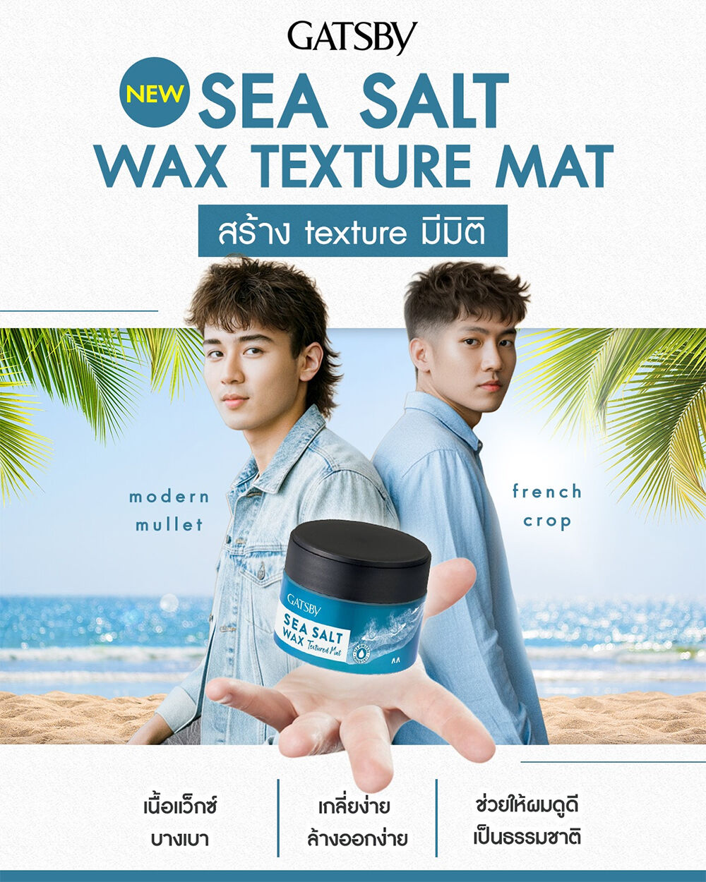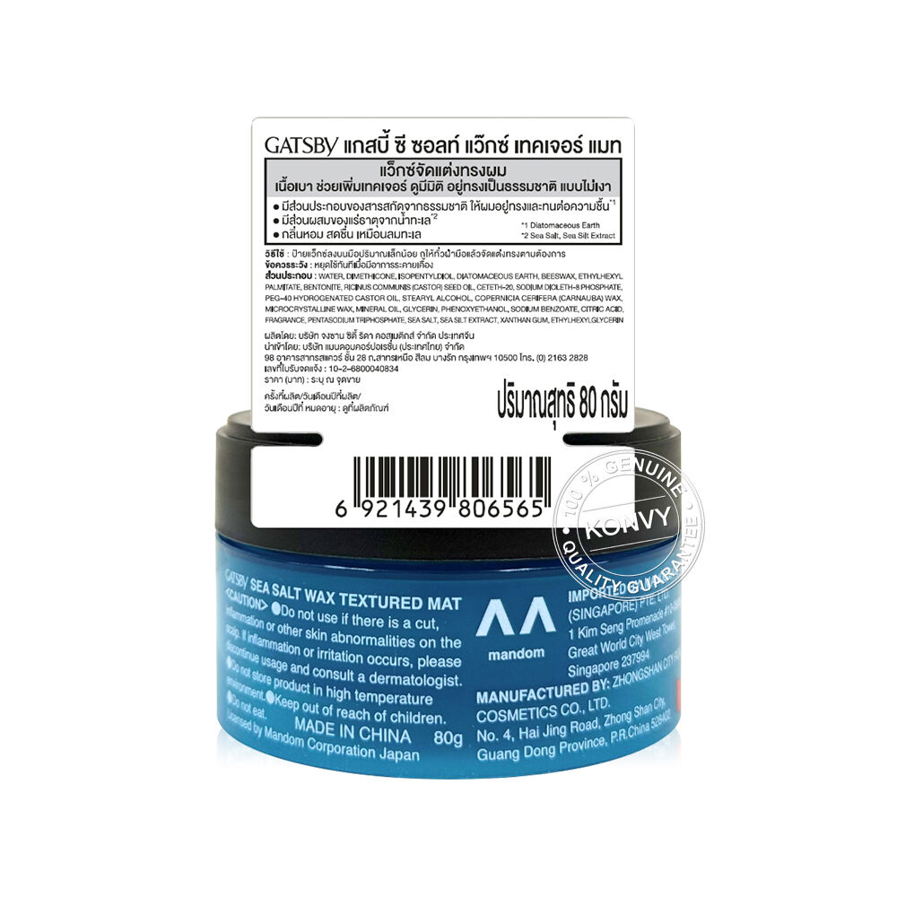 GATSBY Sea Salt Wax Textured Mat 80g แว๊กซ์จัดแต่งทรงผม เนื้อเบา ช่วยเพิ่มเทคเตอร์ ดูมีมิติ อยู่ทรงเป็นธรรมชาติ แบบไม่เงา