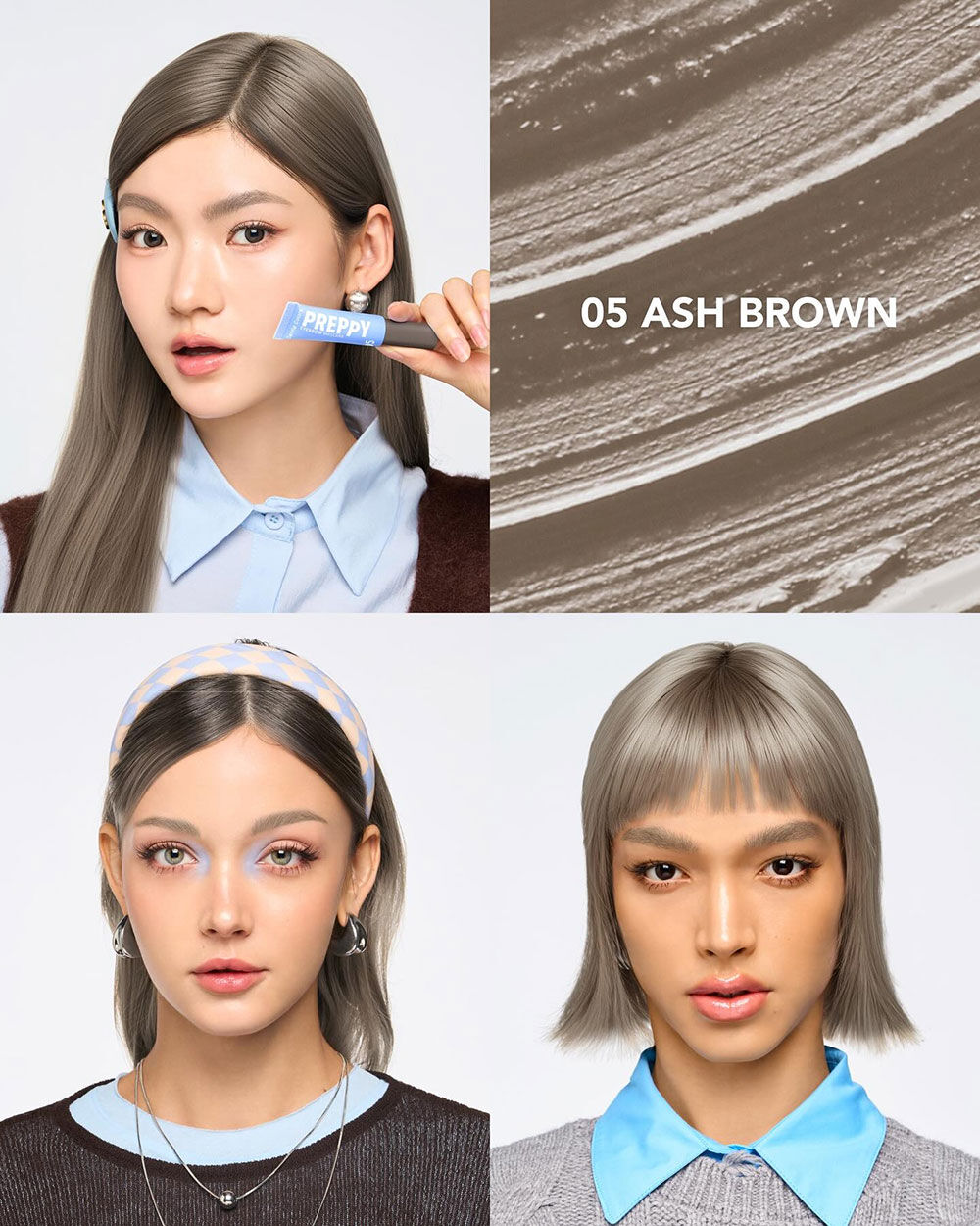 • #05 Ash Brown สีน้ำตาลเข้มหม่น (เหมาะกับผมสีน้ำตาลเข้ม, โทนหม่น หรือดำเข้ม)