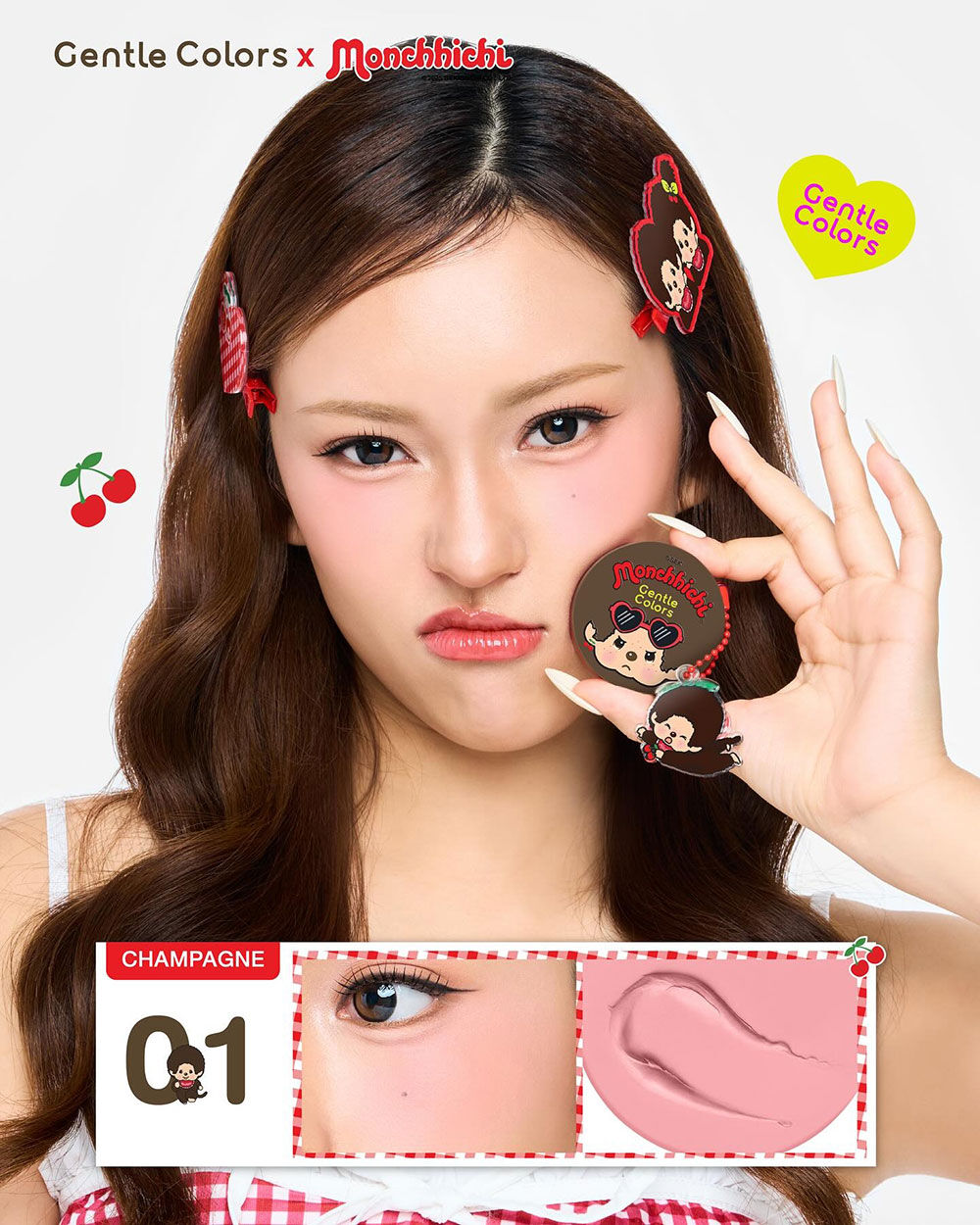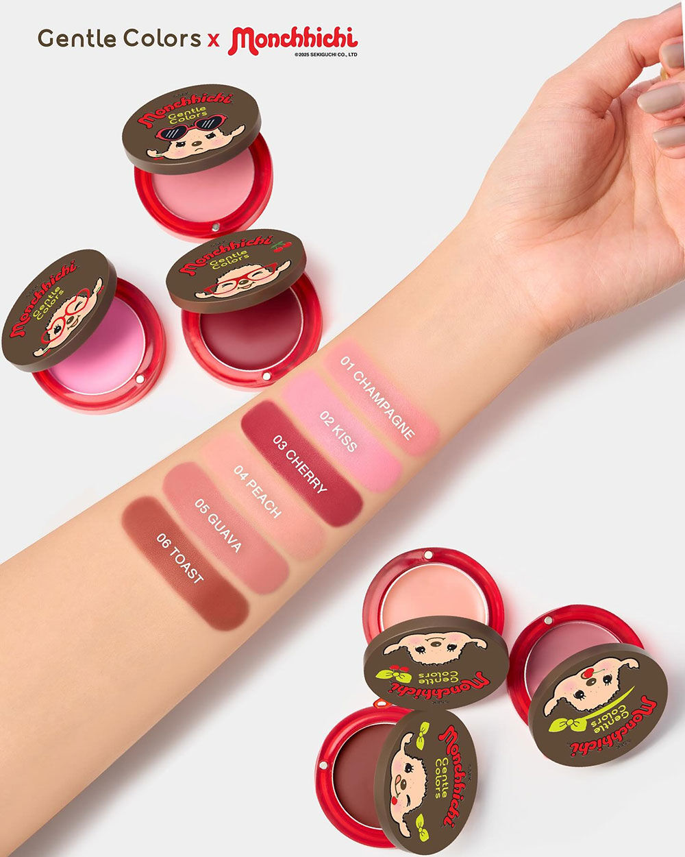 Gentle Colors X Monchchichi Soft Cream Blush 4g #01 Champagne บลัชออนเนื้อครีม ให้สัมผัสแบบ Cream to Powder เกลี่ยง่าย ไม่เป็นคราบ เม็ดสีชัด ติดทนนาน มีเทคโนโลยี Velvet Fix Technology ช่วยผิวเบลอให้เนียนสวย ให้ฟินิชลุคดูละมุนเหมือนแก้มของ Monchchichi