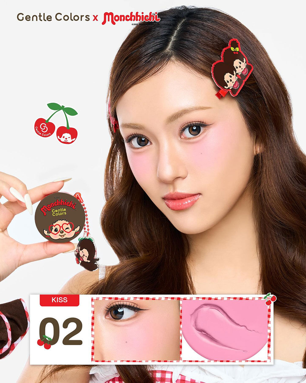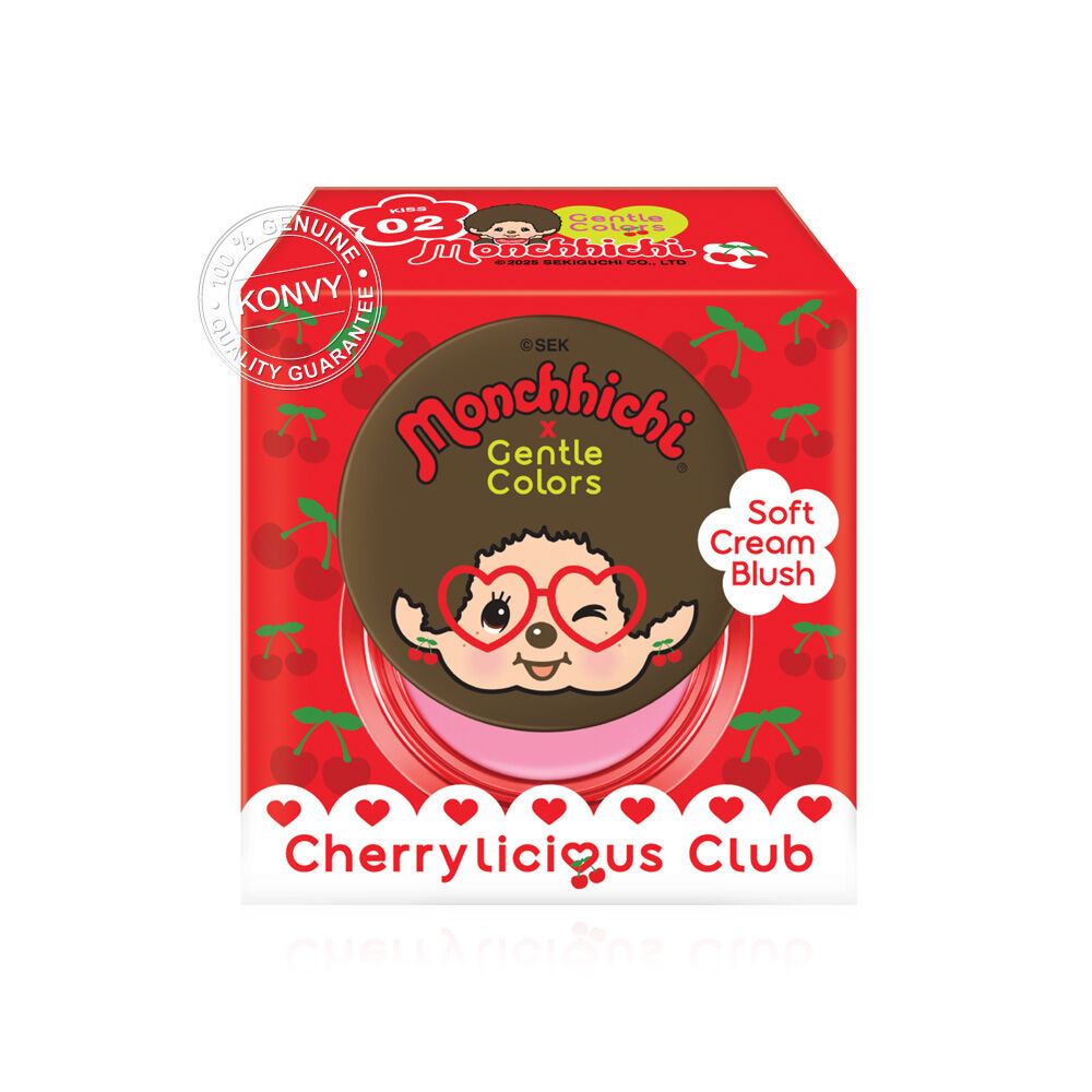 Gentle Colors X Monchchichi Soft Cream Blush 4g #02 Kiss บลัชออนเนื้อครีม ที่มาในแพ็คเกจคอลเลคชัน Monchchichi สุดน่ารัก ให้สัมผัสแบบ Cream to Powder เกลี่ยง่าย ไม่เป็นคราบ เม็ดสีชัด ติดทนนาน มีเทคโนโลยี Velvet Fix Technology ช่วยผิวเบลอให้เนียนสวย พร้อมผสาน Vitamin C และน้ำมันเมล็ดเชอร์รี่ ช่วยบำรุงผิวให้ชุ่มชื้น แลดูกระจ่างใส ให้ฟินิชลุคดูละมุนเหมือนแก้มของ Monchchichi