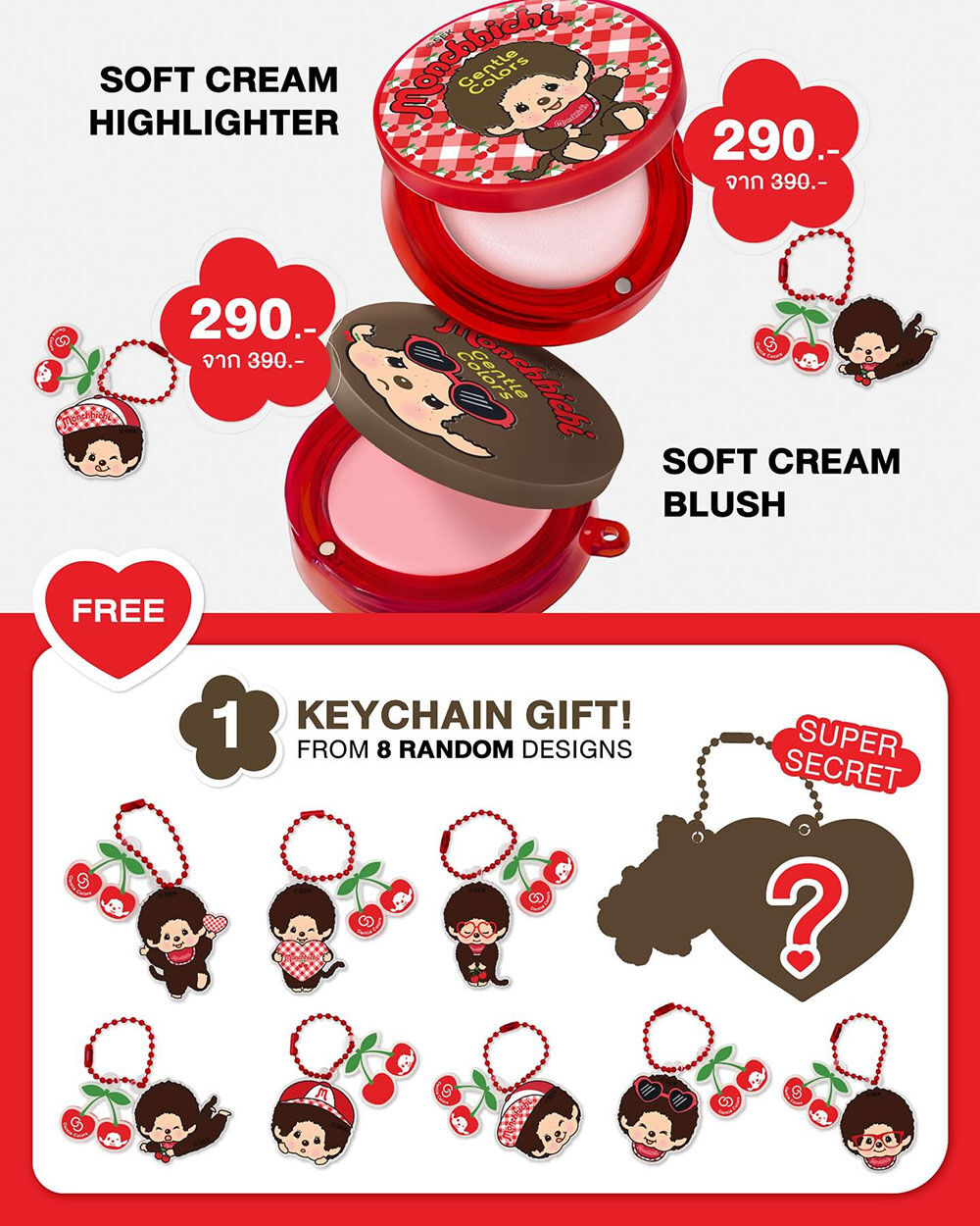 แถมฟรี! พวงกุญแจ Monchchichi 1 ชิ้น (แบบสุ่ม) พร้อมลุ้น Super Secret Surprise!!!
