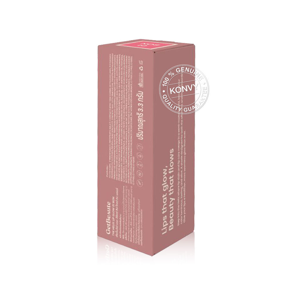 GetBeaute The Helix Lip Glow 3.3g #01 Bon ลิปโกลว์ เนื้อสัมผัสแบบ Colored Multi-Layer นุ่มลื่น สีชัด ไม่ตกร่อง ติดทนนาน ด้วยนวัตกรรม Elastic Flex Film Technology ที่ช่วยล็อคสีให้ติดทนยาวนาน ผสาน Panthenol, Rose Hip Oil, Vitamin E & Grapeseed Oil, Squalene และ HYA15 Molecule ช่วยฟื้นบำรุงริมฝีปาก ล็อคและกักเก็บความชุ่มชื้น และปลอบประโลมริมฝีปาก เผยริมฝีปากเนียนนุ่ม ดูอิ่มฟู สุขภาพดี มาพร้อมดีไซน์แบบเกลียว (Helix Design) จับถนัดมือ สะท้อนความงามที่เคลื่อนไหวได้