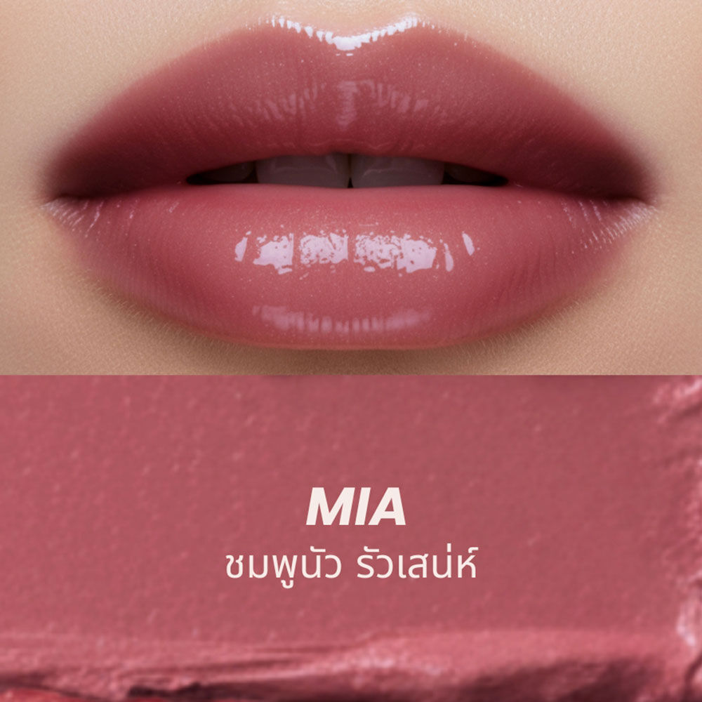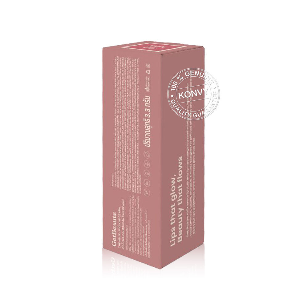 GetBeaute The Helix Lip Glow 3.3g #02 Mia ลิปโกลว์ เนื้อสัมผัสแบบ Colored Multi-Layer นุ่มลื่น สีชัด ไม่ตกร่อง ติดทนนาน ด้วยนวัตกรรม Elastic Flex Film Technology ที่ช่วยล็อคสีให้ติดทนยาวนาน ผสาน Panthenol, Rose Hip Oil, Vitamin E & Grapeseed Oil, Squalene และ HYA15 Molecule ช่วยฟื้นบำรุงริมฝีปาก ล็อคและกักเก็บความชุ่มชื้น และปลอบประโลมริมฝีปาก เผยริมฝีปากเนียนนุ่ม ดูอิ่มฟู สุขภาพดี มาพร้อมดีไซน์แบบเกลียว (Helix Design) จับถนัดมือ สะท้อนความงามที่เคลื่อนไหวได้