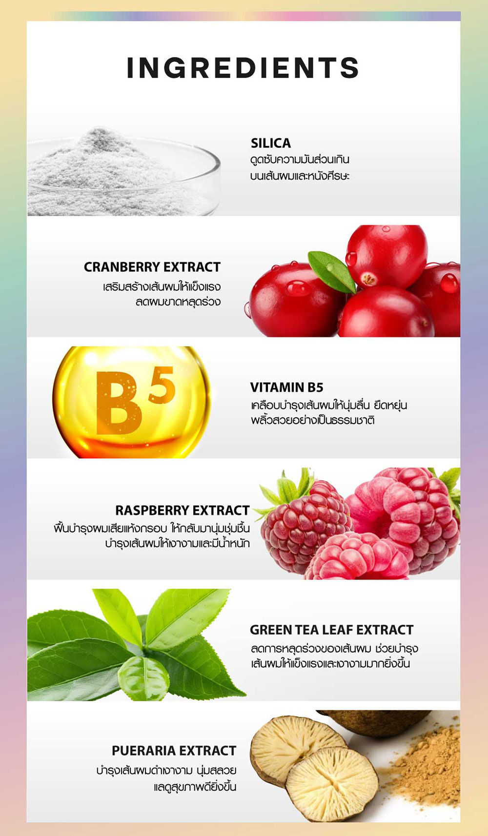 • ดูดซับความมันส่วนเกินบนหนังศีรษะ
