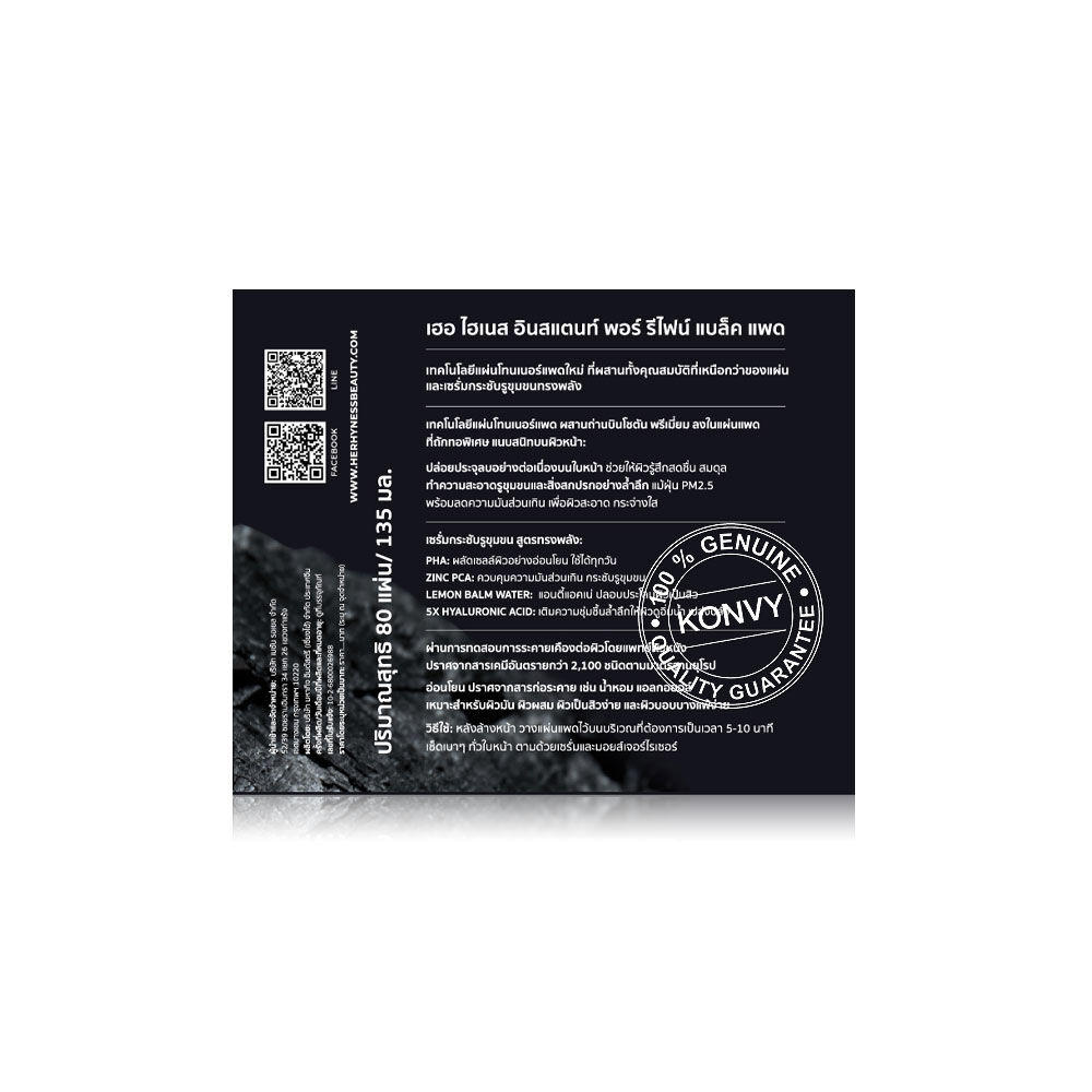 HER HYNESS Instant Pore Refine Black Pad 80 Sheets โทนเนอร์แพด ด้วยเทคโนโลยีเเผ่นผสาน Premium Binchotan พร้อม Super Serum ผลัดเซลล์ผิวอย่างอ่อนโยน กระชับรูขุมขน เติมความชุ่มชื้นให้ผิว ใช้ได้ทุกวัน