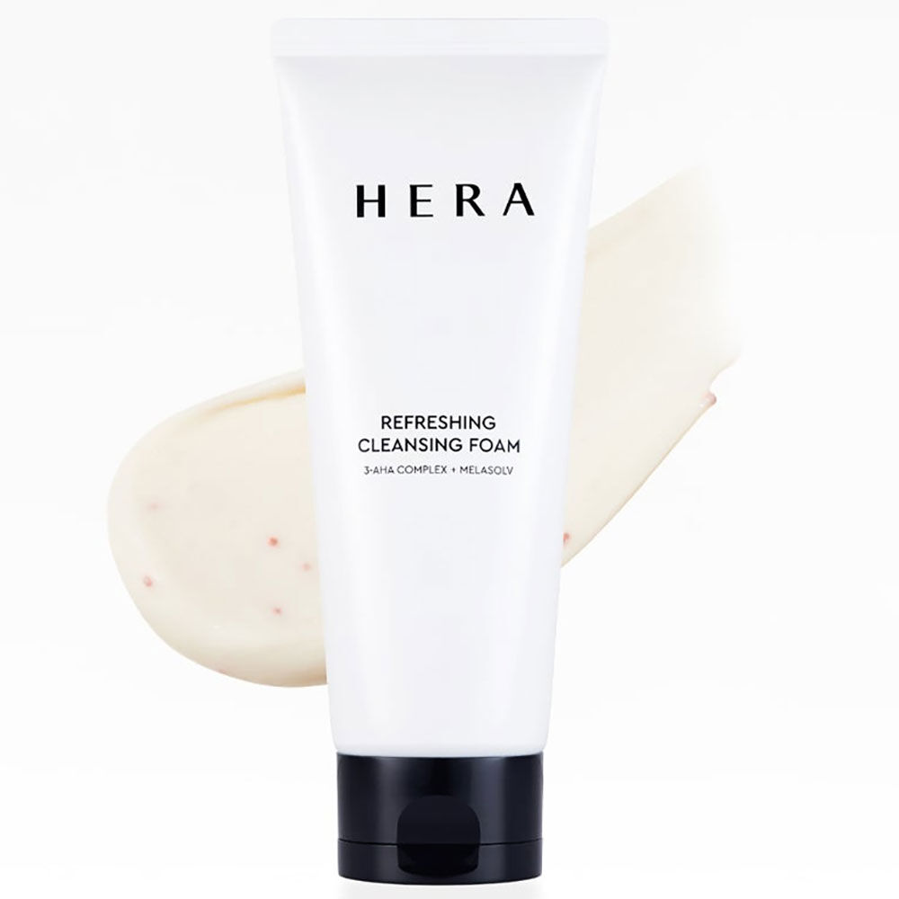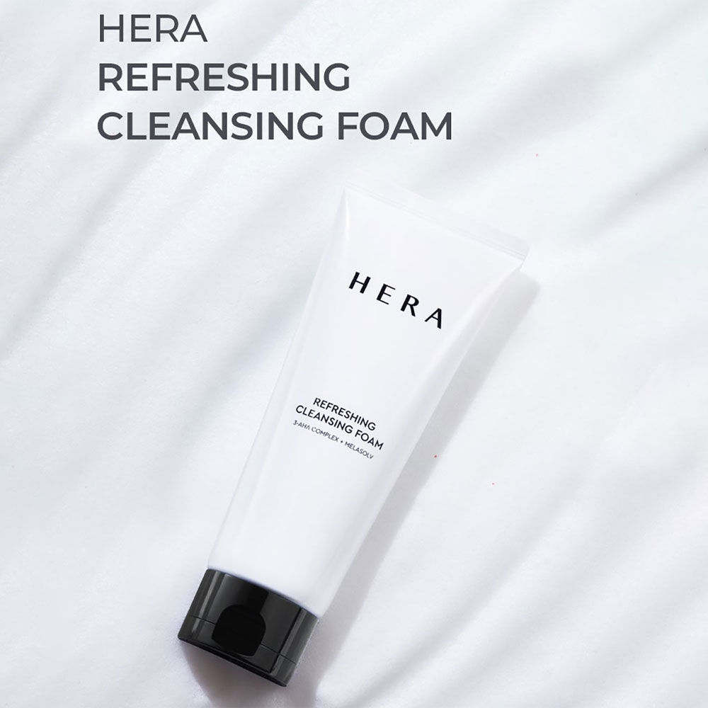 HERA Refreshing Cleansing Foam 160g โฟมล้างหน้า ช่วยขจัดสิ่งสกปรกและเซลล์ผิวที่ตายแล้วอย่างอ่อนโยน ด้วยส่วนผสมของ 3-AHA Complex และเม็ดบีดส์ Cellulose Beads พร้อมเติมความชุ่มชื้นให้ผิวสดชื่น ไม่แห้งตึงหลังใช้
