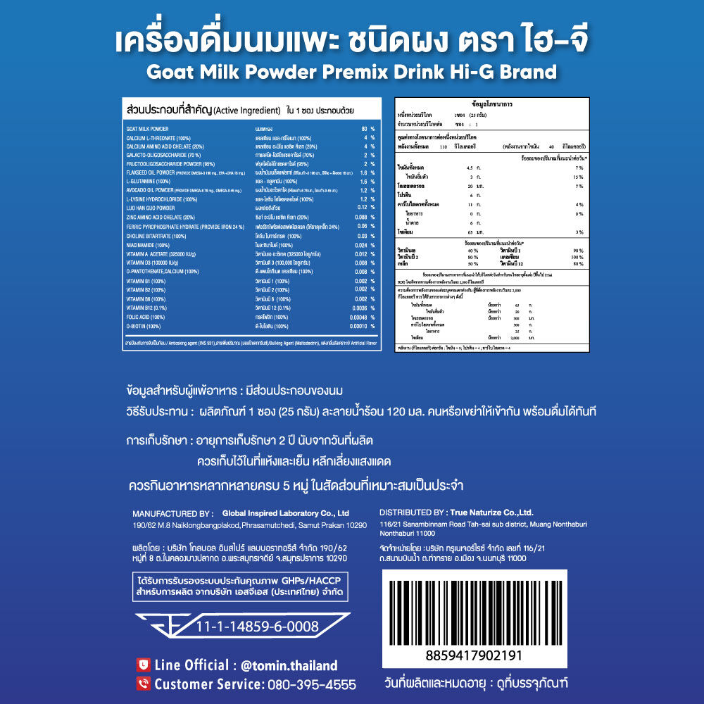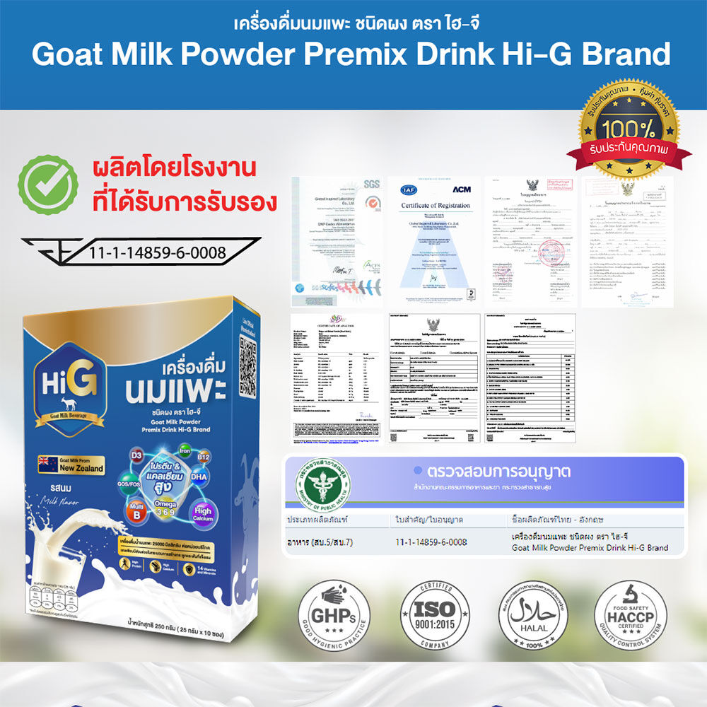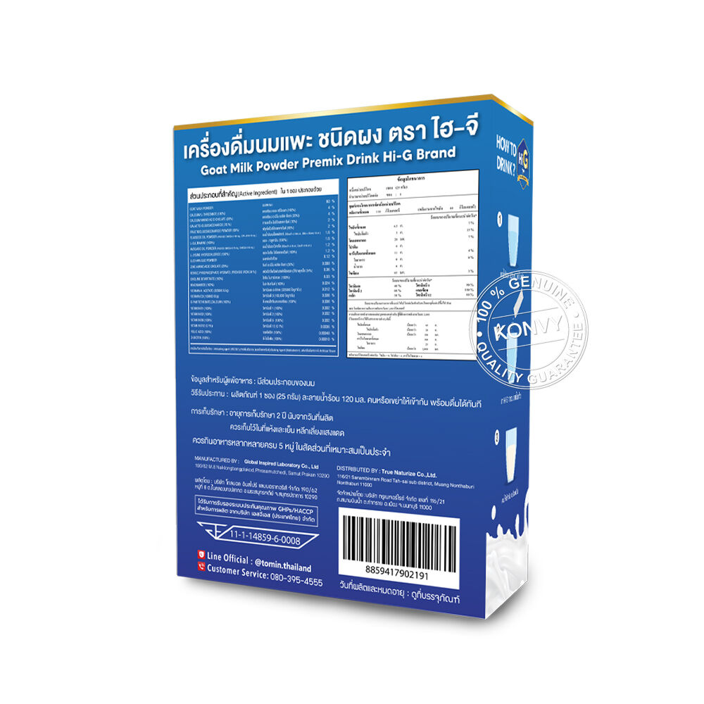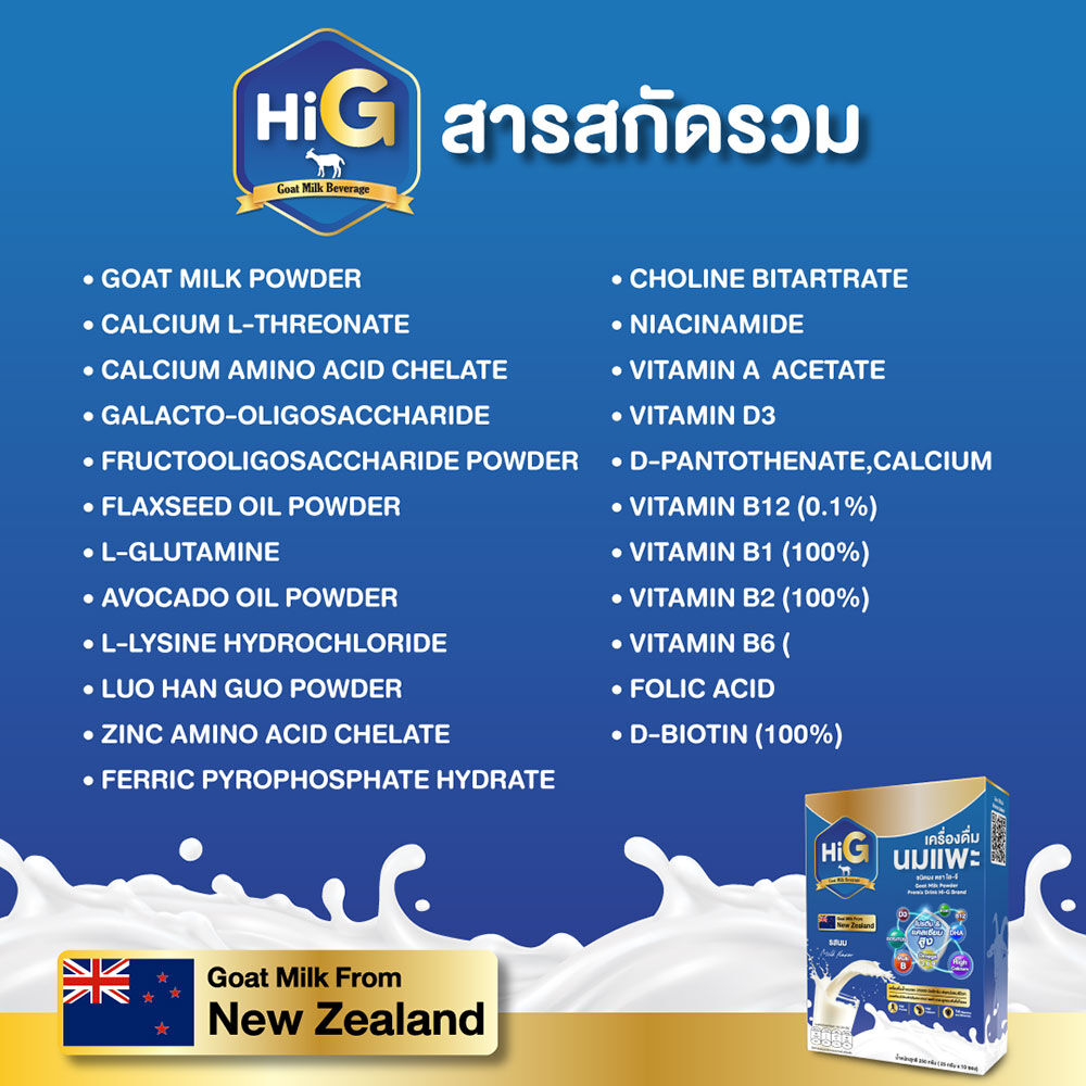 Hi-G Goat Milk Powder Premix Drink [25g x 10 Sachets] เครื่องดื่มนมแพะชนิดผง ผลิตจากนมแพะธรรมชาติ จากฟาร์มที่ได้มาตรฐานสูงในประเทศนิวซีแลนด์ รสชาติหอมอร่อย มีสารอาหารสำคัญครบถ้วน ให้โปรตีน และแคลเซียมสูง