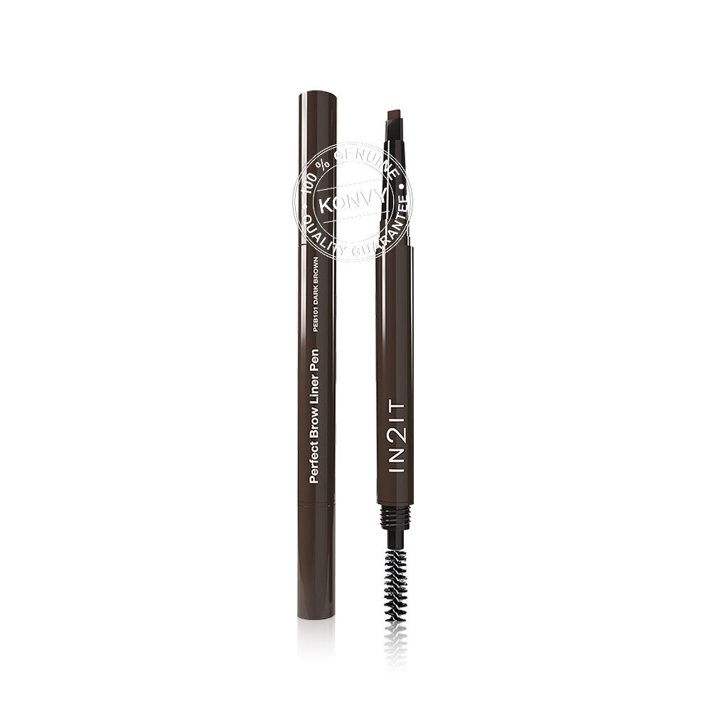 In2It Perfect Brow Liner Pen 0.2g #PEB101 Dark Brown ดินสอเขียนคิ้วเนื้อเนียนนุ่มลื่น ไม่เป็นก้อน ปลายดินสอรูปทรงหยดน้ำ ใช้งานง่าย วาดได้ทั้งเส้นหนา หรือเส้นบาง กันน้ำ กันเหงื่อ ติดทนตลอดวัน มาพร้อมแปรงปัดคิ้ว ช่วยจัดทรงขนคิ้วให้เรียงสวยเป็นธรรมชาติ อีกทั้งยังมีส่วนผสมของ Vitamin E และ Bisabolol ช่วยบำรุงขนคิ้วให้แข็งแรง มอบฟินิชคิ้วสวยคมทุกมิติ