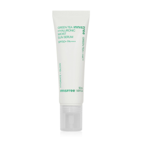 Innisfree Green Tea Hyaluronic Moist Sun Serum 50ml เซรั่มกันแดด มอบความชุ่มชื้นให้ผิวที่แห้งกร้าน ถูกทำร้ายจากแสงแดดและรังสียูวี ด้วยกลไกการบำรุงจาก Capsule Hyaluronic Acid & Beauty Green Tea พร้อมป้องกันแสงแดดด้วย SPF 50+ PA++++ ปราศจากน้ำหอม อ่อนโยนแม้ผิวแพ้ง่าย
