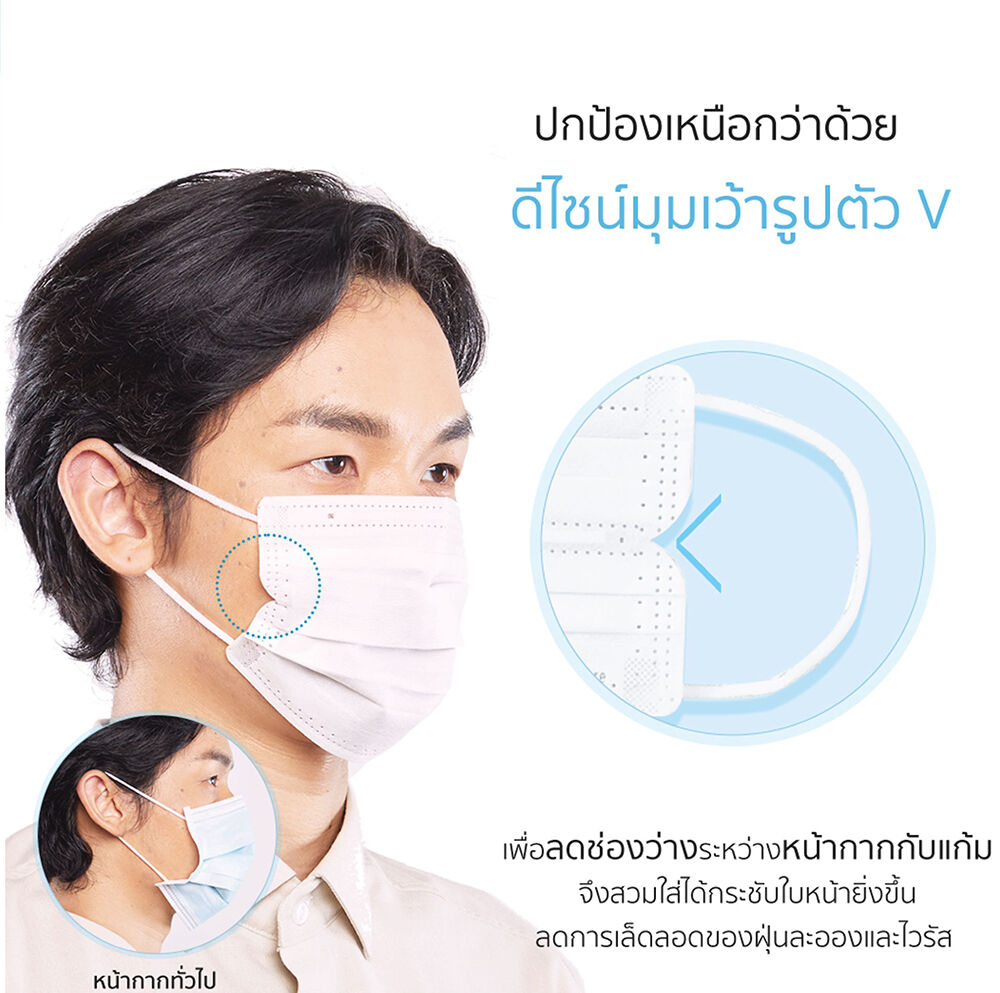 • ขอบข้างแบบ V-Cut ช่วยให้แนบสนิทกับใบหน้า