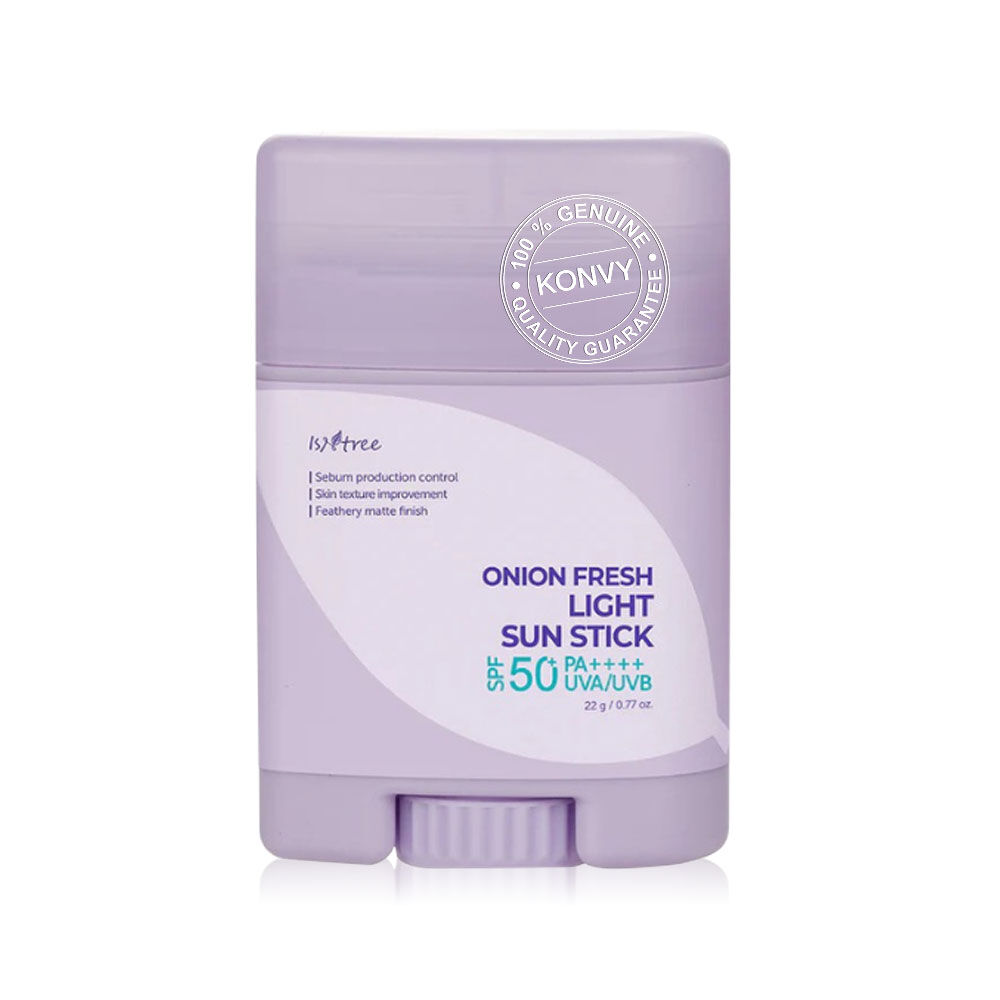 ISNTREE Onion Fresh Light Sun Stick SPF50+ PA++++ 22g กันแดดเนื้อครีมแบบแท่ง มี SPF50+ PA++++ ปกป้องผิวจากรังสี UV ผสานสารสกัดจากหัวหอมแดง Muan ที่อุดมไปด้วยเจอร์เมเนียมและแร่ธาตุ ช่วยดูแลรอยตำหนิ พร้อมมอบคุณค่าบำรุงและปลอบประโลมผิว สูตรดูแลรูขุมขนที่ประกอบด้วย Zinc PCA, Green Ferment Blends, Niacinamide และ Acetyl Glucosamine ที่ช่วยควบคุมความมัน ปลอบประโลมผิวที่ระคายเคือง ลดเลือนรูขุมขนกว้าง และฟื้นฟูผิวโดยรวม