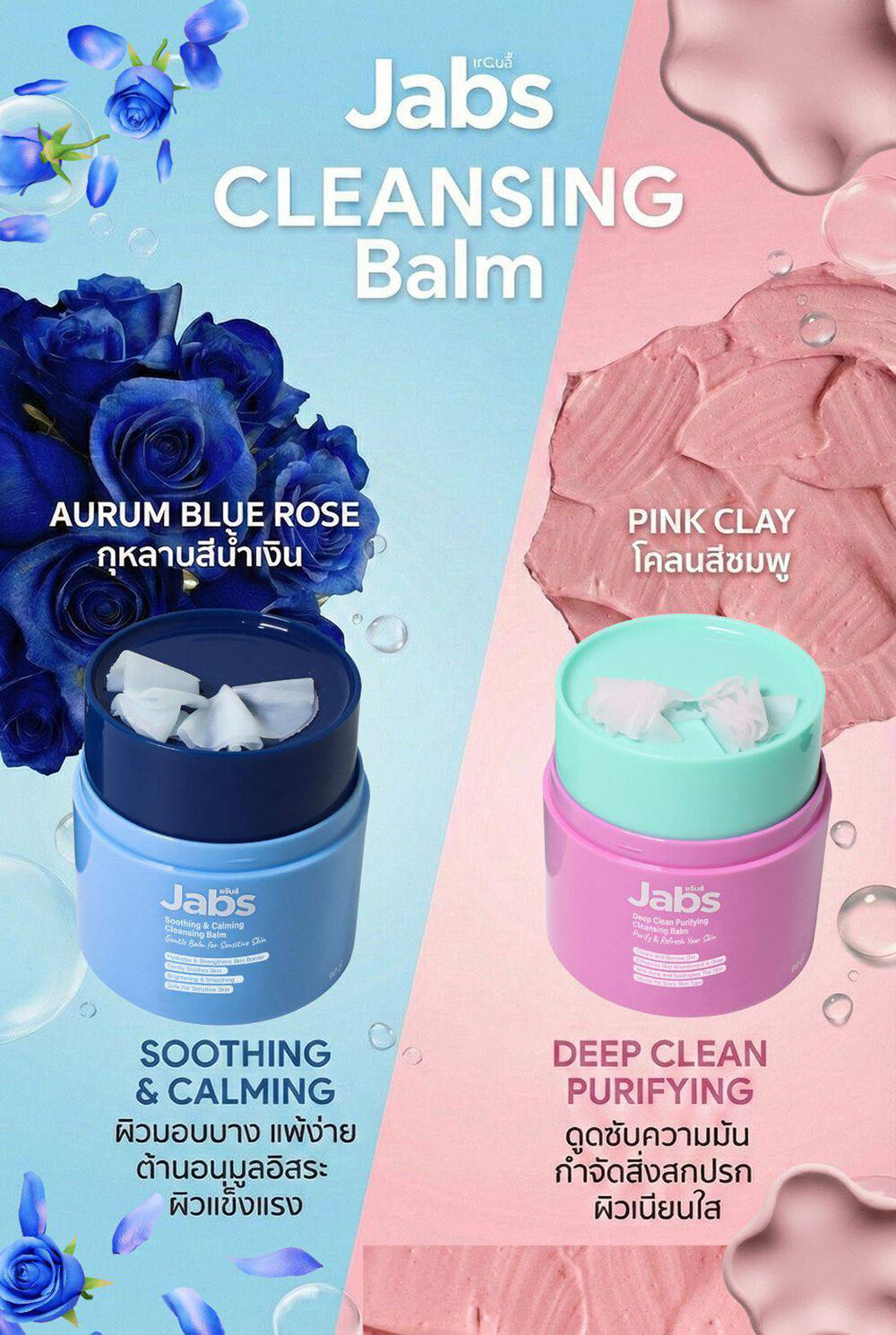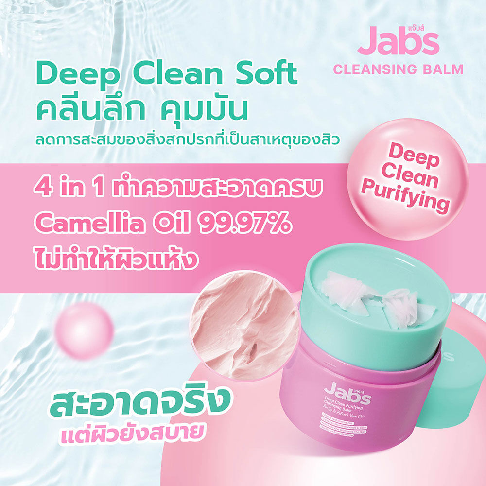 Jabs Deep Clean Purifying Cleansing Balm 40ml คลีนซิ่งบาล์ม โคลนสีชมพูจากฝรั่งเศส ช่วยทำความสะอาดล้ำลึก ดูดซับความมันและสิ่งสกปรก ลดสิวและการอักเสบของผิว พร้อมเติมความชุ่มชื้น ให้ผิวกระจ่างใส สุขภาพดี