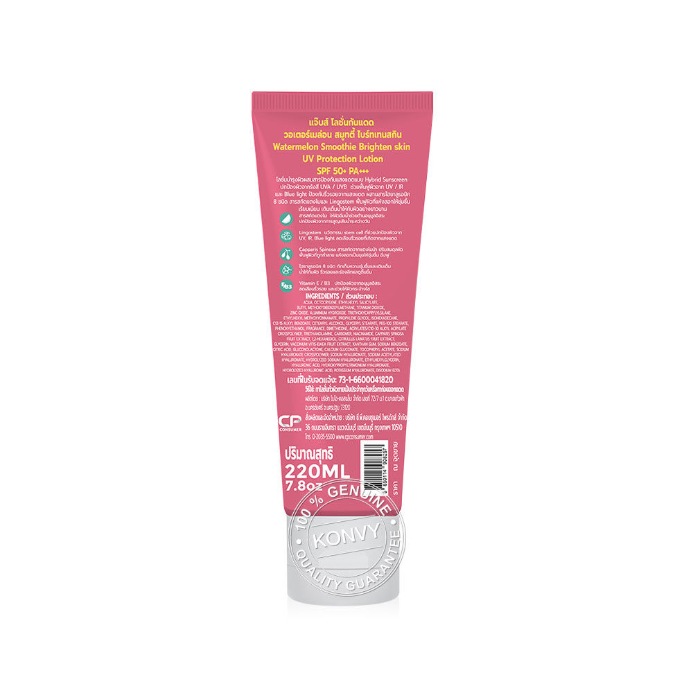 Jabs Watermelon Smoothie Lotion SPF50 PA+++ 220ml โลชั่นบำรุงผิวผสมสารป้องกันแสงแดดแบบ Hybrid เนื้อบางเบา เกลี่ยง่าย ด้วยค่า SPF50+ PA+++ พร้อมปกป้องผิวจากรังสี UVA/UVB