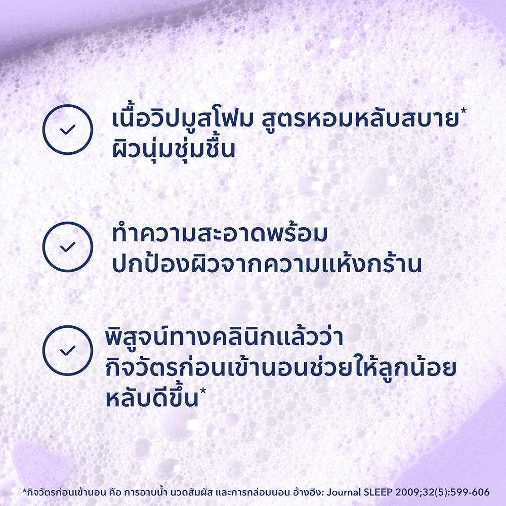 • เนื้อวิปมูสโฟม กลิ่นอโรม่าหอมหลับสบาย ผิวนุ่มชุ่มชื้น