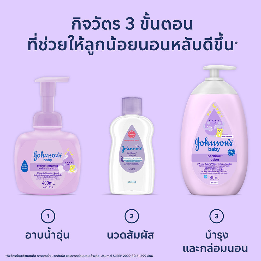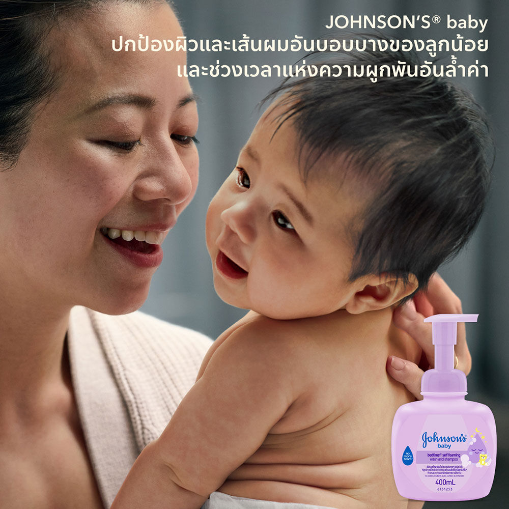 Johnsons Baby Wash & Shampoo Bedtime Self Foaming Wash Bottle 400ml ผลิตภัณฑ์ทำความสะอาดผิวและสระผม ปกป้องผิวและเส้นผมอันบอบบางของลูกน้อย และช่วงเวลาแห่งความผูกพันอันล้ำค่า