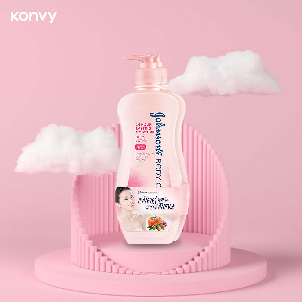 Johnsons Body Care Lotion 24 Hour Lasting Moist Lotion [400ml x 2pcs] เพื่อผิวนุ่ม ชุ่มชื่นยาวนานกับโลชั่นบำรุงผิวกาย สูตรชุ่มชื่น ด้วยโจโจ้บาออยล์ เชียบัตเตอร์ และวิตามินอี อุดมด้วยมอยซ์เจอร์ไรเซอร์เข้มข้น ที่อ่อนโยนไม่ระคายเคืองผิว ช่วยคงความชุ่มชื่นและบำรุงผิวให้เนียนนุ่ม