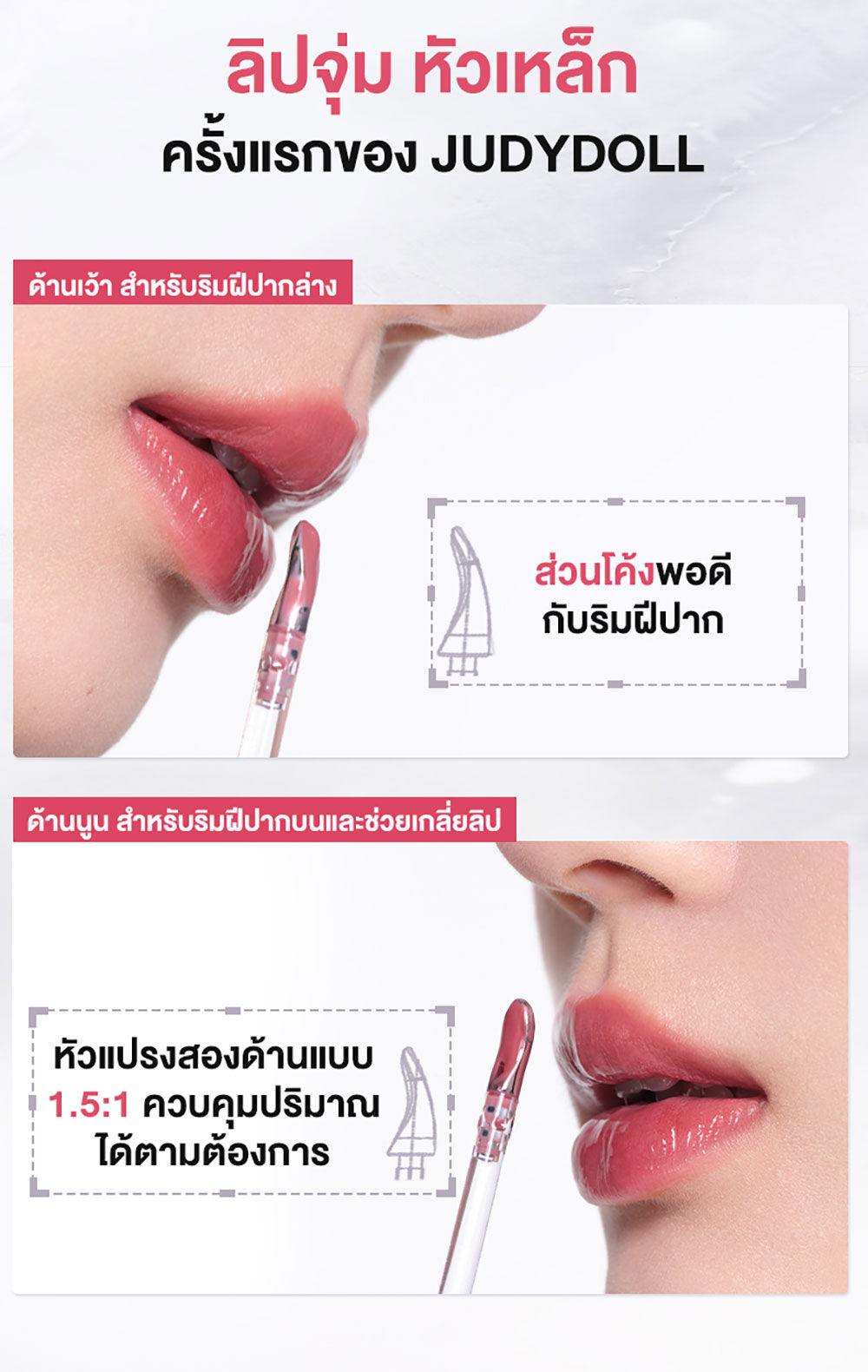 JUDYDOLL Watery Lip Gloss 2.4g #11 Blueberry Bailey's Sweet ลิปกลอสเนื้อเอสเซนส์ ให้สีปากสวย ฉ่ำวาว ติดทนนาน ล็อคสีสดชัด ด้วย Glosstay Technology พร้อมการบำรุงด้วยสารบำรุงผิว จากคอลลาเจน และกรดไฮยาลูรอนิค หัวแปรงสองด้านแบบอัปเกรดหัวแปรง ควบคุมปริมาณได้ตามต้องการ ด้านเว้าโค้งพอดีริมฝีปากล่าง ด้านนูนสำหรับริมฝีปากบน และเกลี่ยลิปให้เรียบเนียน มาพร้อม 4 เฉดสี ทั้งวอร์มโทนและคูลโทน ช่วยขับผิวให้ดูไบรท์