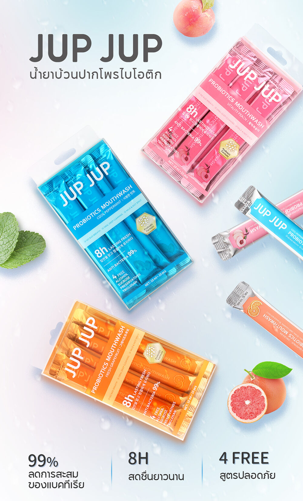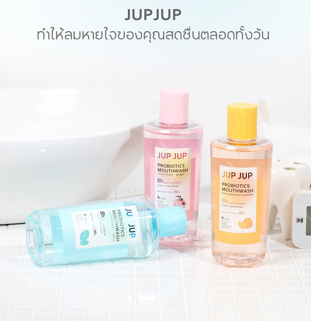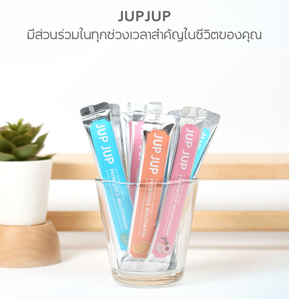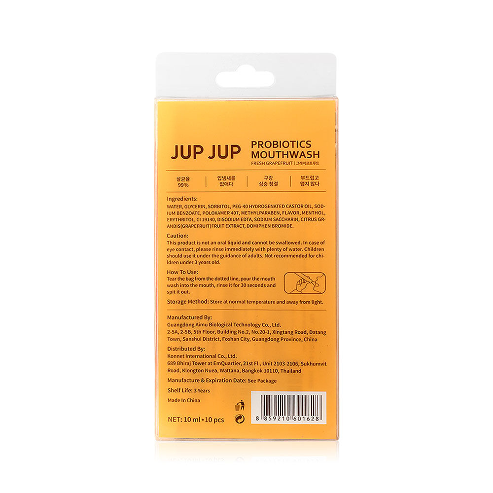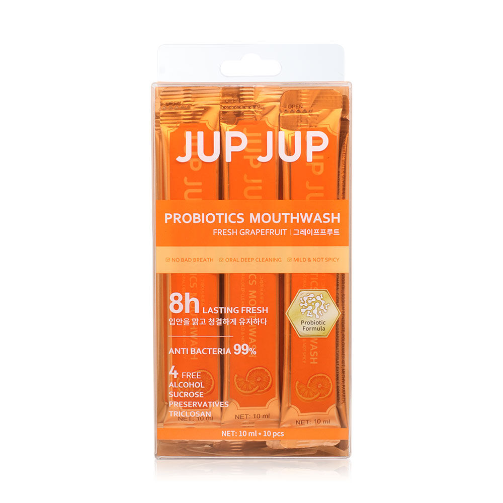 [Buy 1 Get 1] JUP JUP Probiotics Mouthwash [10ml x 10pcs] #Fresh Grapefruit เพิ่มความมั่นใจระหว่างวันด้วยน้ำยาบ้วนปาก กลิ่นเกรปฟรุต 10ซอง สำหรับพกพา ช่วยทำความสะอาดช่องปาก ลดการสะสมของแบคทีเรีย 99.9% มอบลมหายใจหอมสดชื่นยาวนาน 8 ชั่วโมง