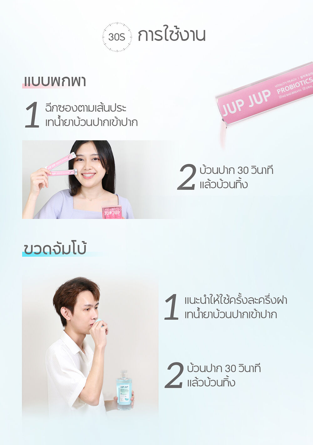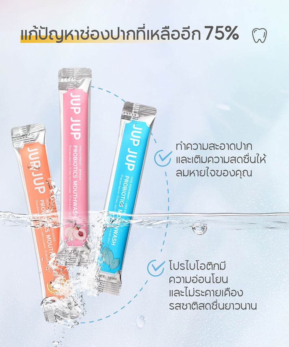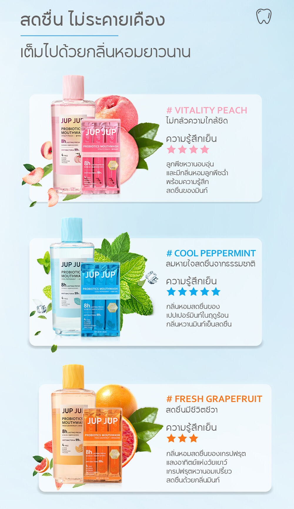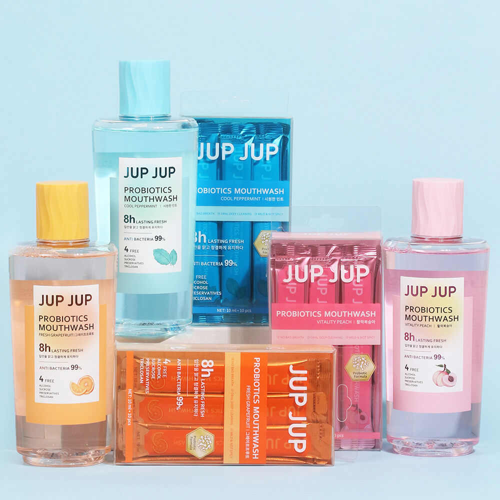 [Buy 1 Get 1] JUP JUP Probiotics Mouthwash [10ml x 10pcs] #Fresh Grapefruit เพิ่มความมั่นใจระหว่างวันด้วยน้ำยาบ้วนปาก กลิ่นเกรปฟรุต 10ซอง สำหรับพกพา ช่วยทำความสะอาดช่องปาก ลดการสะสมของแบคทีเรีย 99.9% มอบลมหายใจหอมสดชื่นยาวนาน 8 ชั่วโมง