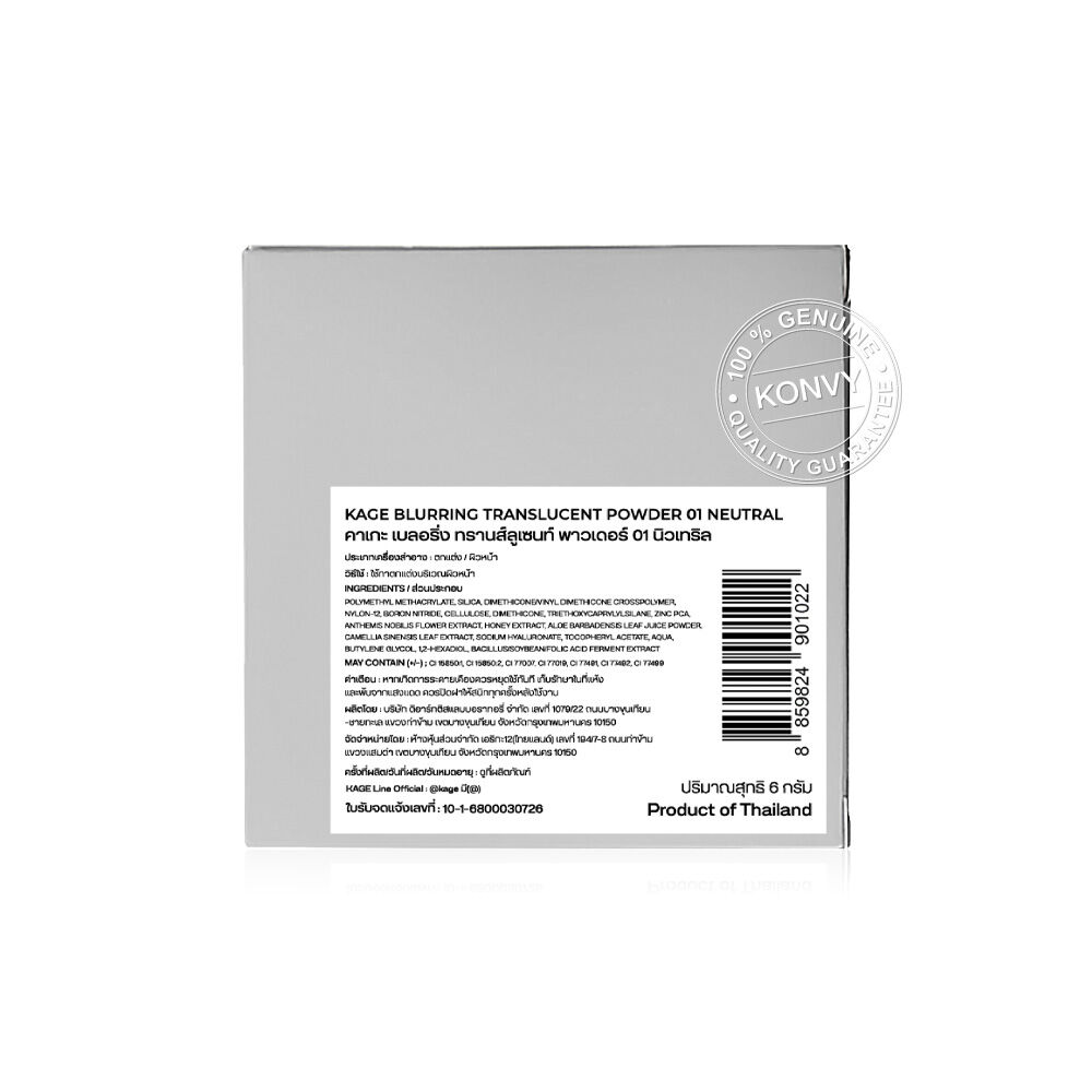 KAGE Blurring Translucent Powder 6g #01 Neutral แป้งไอซิ่งเบลอผิว เนื้อแป้งระดับไมครอน ละเอียดพิเศษ ช่วยเบลอรูขุมขนอย่างเป็นธรรมชาติ กันน้ำ กันเหงื่อ คุมมัน
