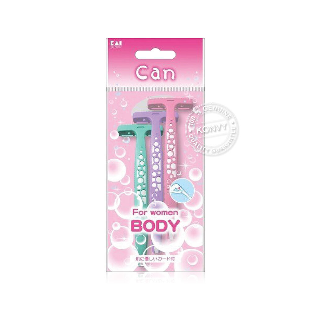 Kai Can Bubble T Razor [3pcs] มีดโกนขน มาพร้อมลายบับเบิ้ล ด้ามจับอ่อนนุ่ม ป้องกันการลื่นไหล มีมุมให้พอดีกับผิวของคุณ