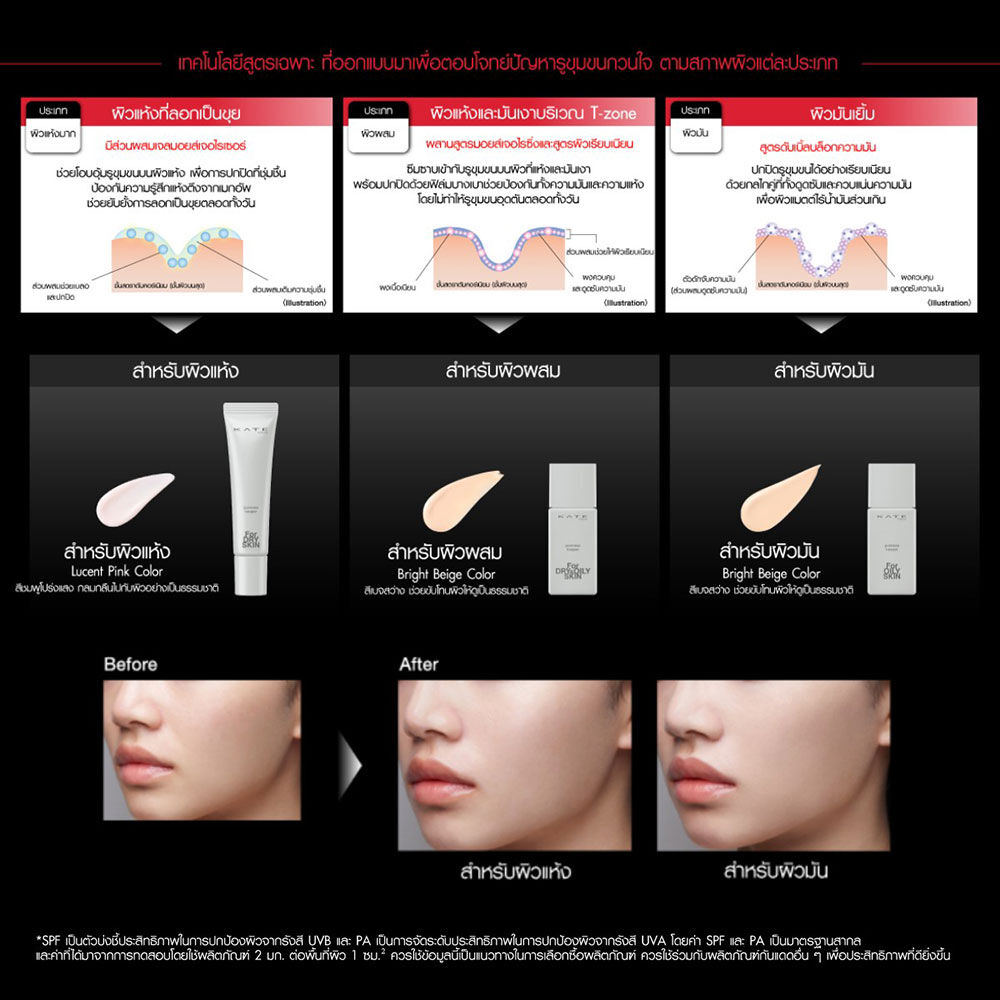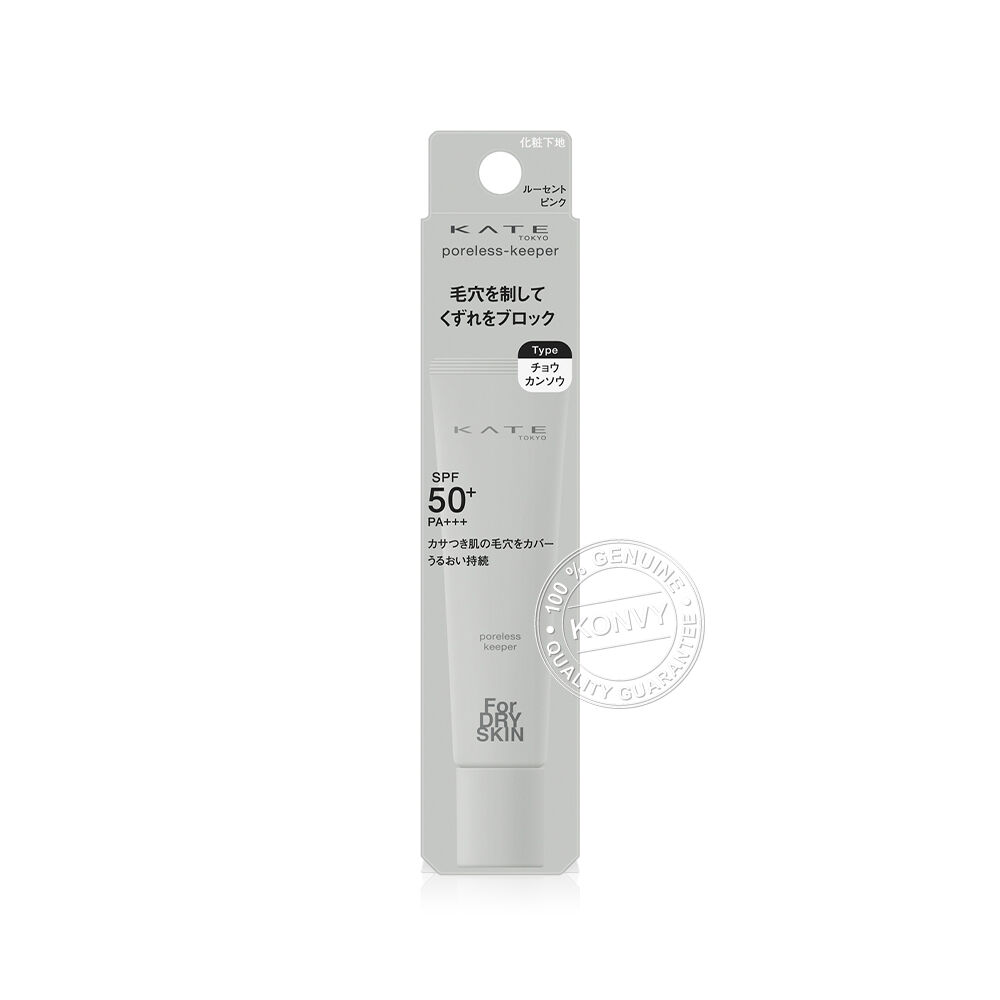 KATE Poreless-Keeper Base For Dry Skin SPF50+ PA+++ 25g ไพรเมอร์สำหรับผิวแห้งโดยเฉพาะ เนื้อสัมผัสเกลี่ยง่าย ช่วยเบลอรูขุมขน ควบคุมความมันส่วนเกิน และปรับผิวให้พร้อมสำหรับการแต่งหน้า พร้อมผสาน Sodium Hyaluronate และ Centella Asiatica (สารสกัดใบบัวบก) ช่วยบำรุงและเติมความชุ่มชื้นให้ผิว มอบผิวเรียบเนียน เมคอัพติดทนตลอดวัน