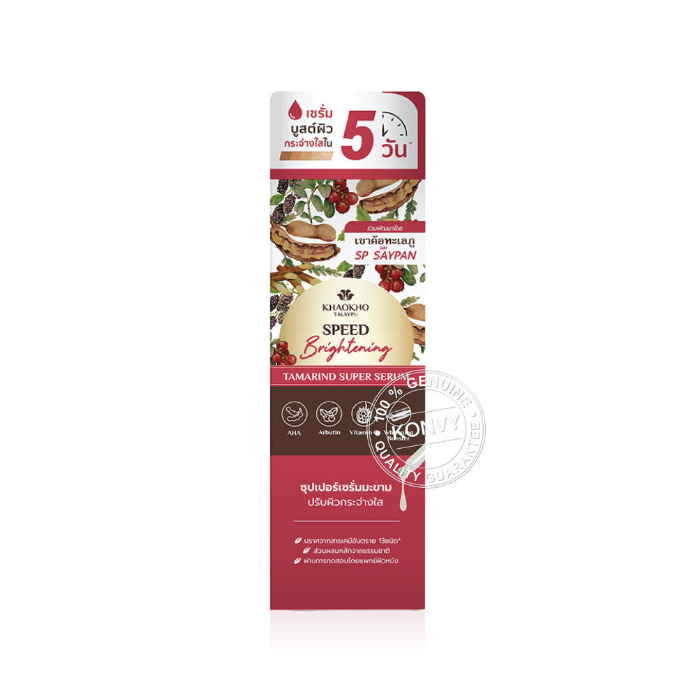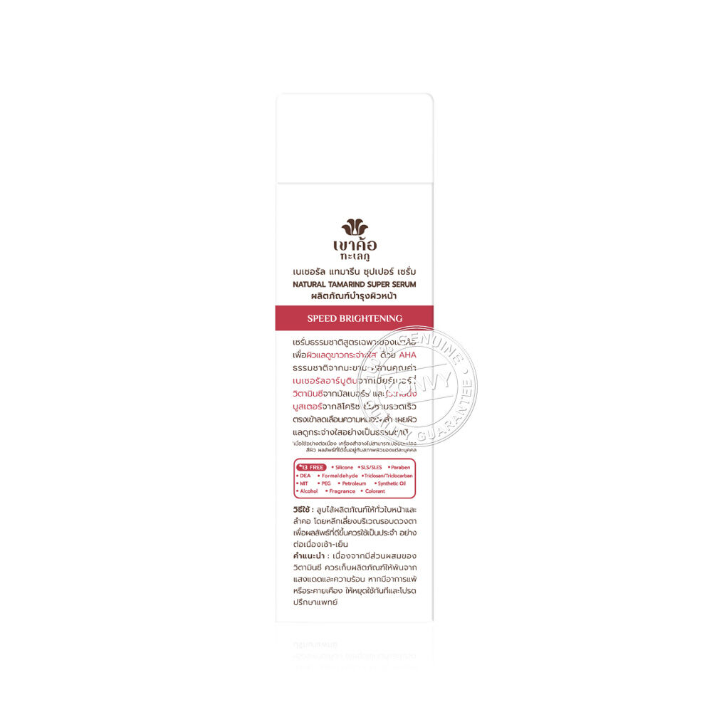 Khaokho Talaypu Face Serum Tamarind 30ml เซรั่มธรรมชาติสูตรเฉพาะของเขาค้อ เพื่อผิวแลดูกระจ่างใส ด้วย AHA ธรรมชาติจากมะขาม ผสานคุณค่าเนเชอรัล อาร์บูตินจากเบียร์เบอร์รี่ วิตามินซีจากมัลเบอร์รี่ และไวเทนนิ่งบูสเตอร์จากลิโคริช ที่มีส่วนช่วยลดการสร้างเม็ดสีใต้ชั้นผิวอย่างล้ำลึก ซึมซาบรวดเร็วตรงเข้าลดเลือนความหมองคล้ำ เผยผิวแลดูกระจ่างใสอย่างเป็นธรรมชาติ