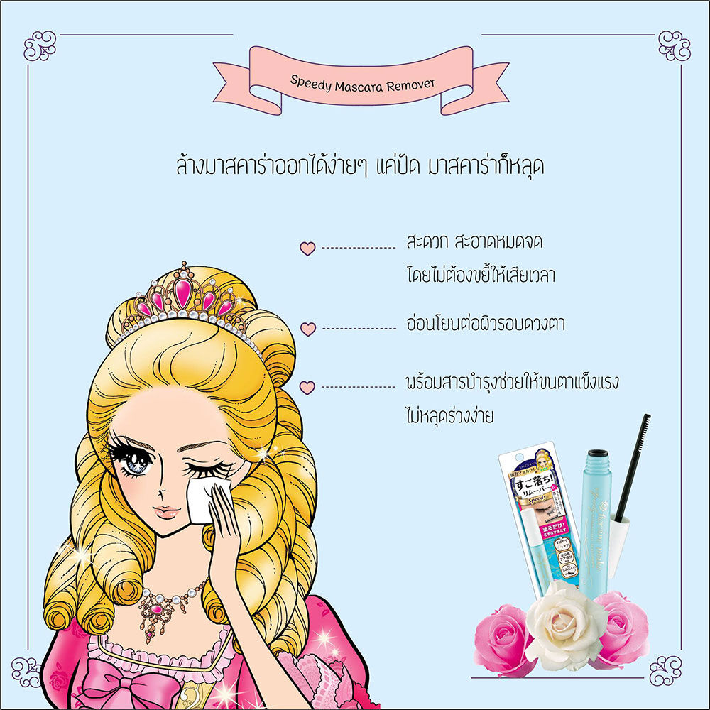 • เพียงใช้ Speedy Mascara ก็ง่ายต่อการล้างออก และอ่อนโยนต่อดวงตา ไม่จำเป็นต้องขยี้ให้เสียเวลา