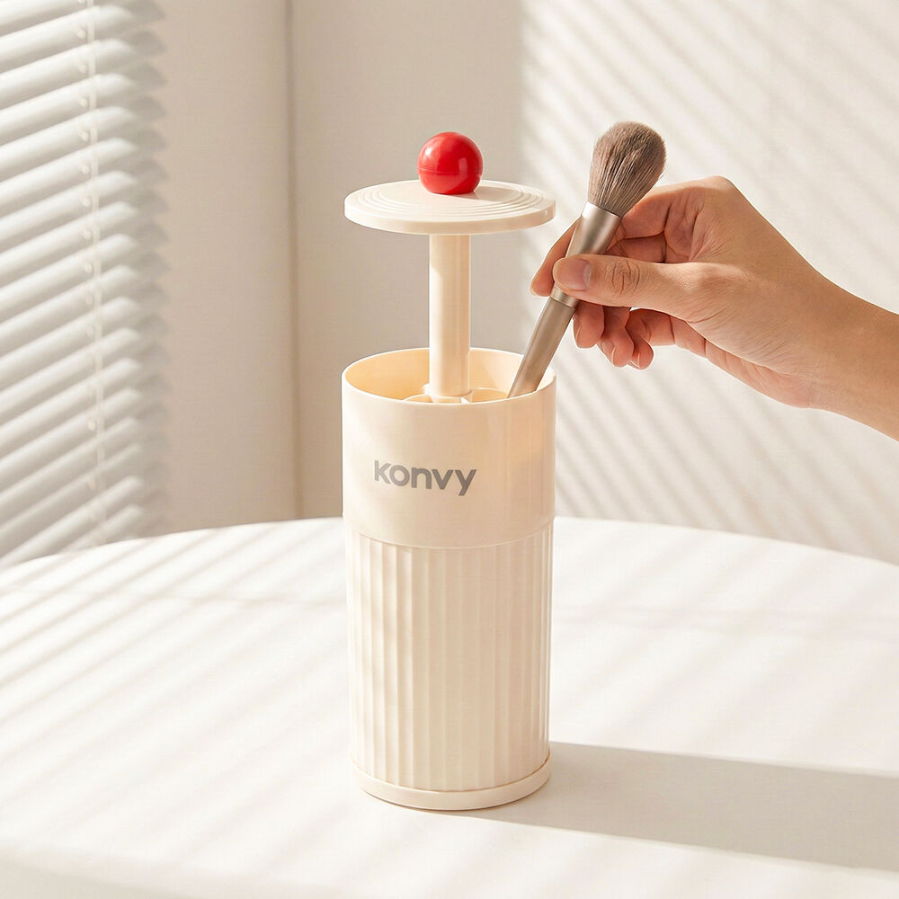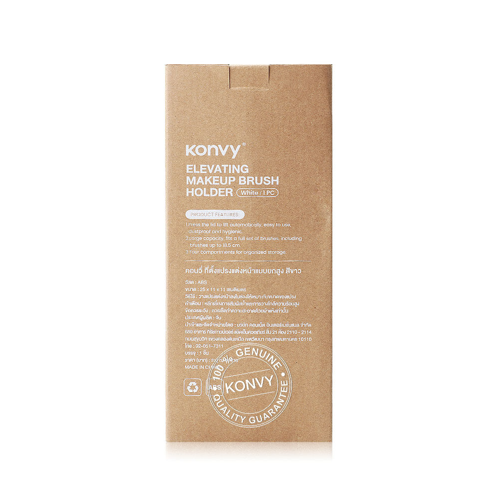 Konvy Elevating Makeup Brush Holder #White กล่องเก็บแปรงแต่งหน้า สีขาว ที่มาพร้อมฟังก์ชันแบบยกขึ้น ช่วยให้สามารถหยิบใช้งานแปรงทุกขนาดได้สะดวกยิ่งขึ้น และมีฝาครอบปิด ช่วยปกป้องแปรงจากฝุ่นและสิ่งสกปรก เพื่อสุขอนามัยที่ดี เปลี่ยนโต๊ะเครื่องแป้งที่วุ่นวาย ให้ดูหรูหราและสะอาดตายิ่งขึ้น