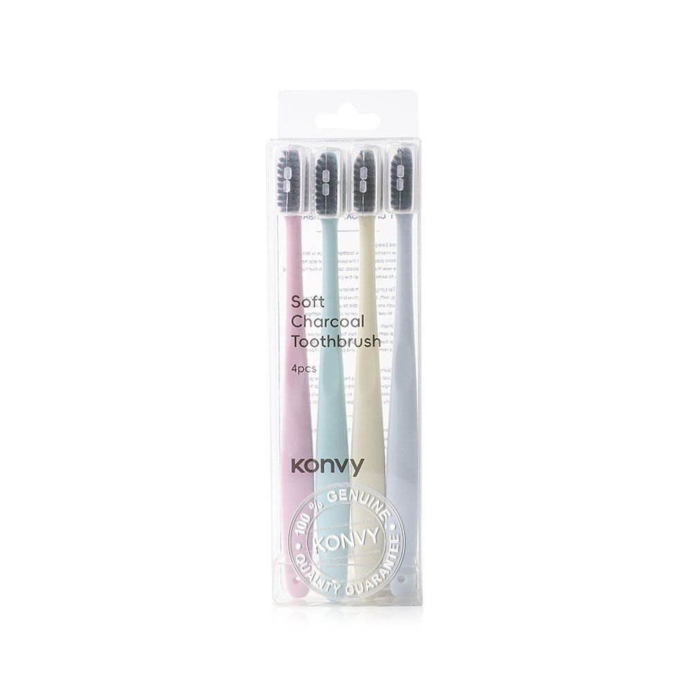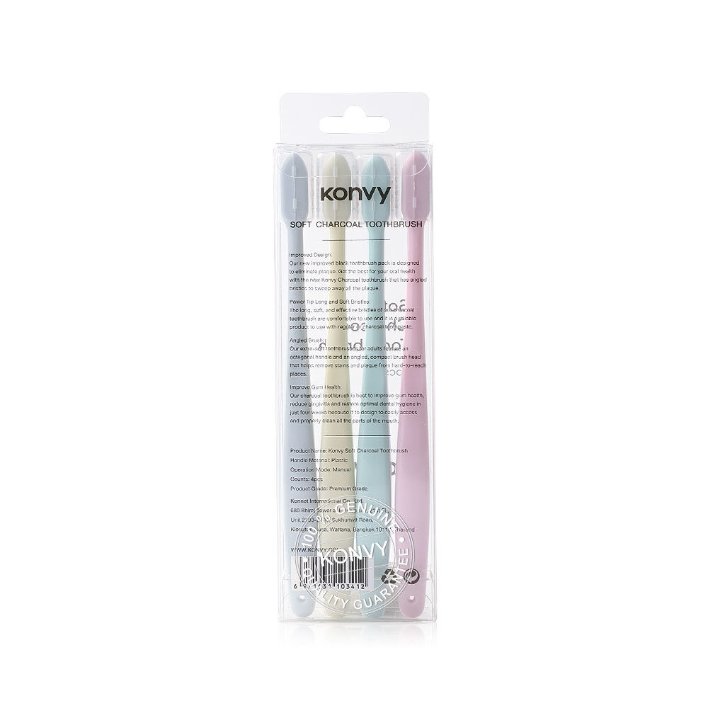 Konvy Portable Soft Toothbrush With Protective Cover Set [4pcs] เซทแปรงสีฟัน 4 ชิ้น ผลิตจากวัสดุถ่านไม้ไผ่ ปลอดภัยไร้สารเคมี คุณภาพดีแข็งแรงทนทาน ดีไซน์เรียบง่าย มาพร้อมที่ครอบขนแปรง ช่วยป้องกันสิ่งสกปรก