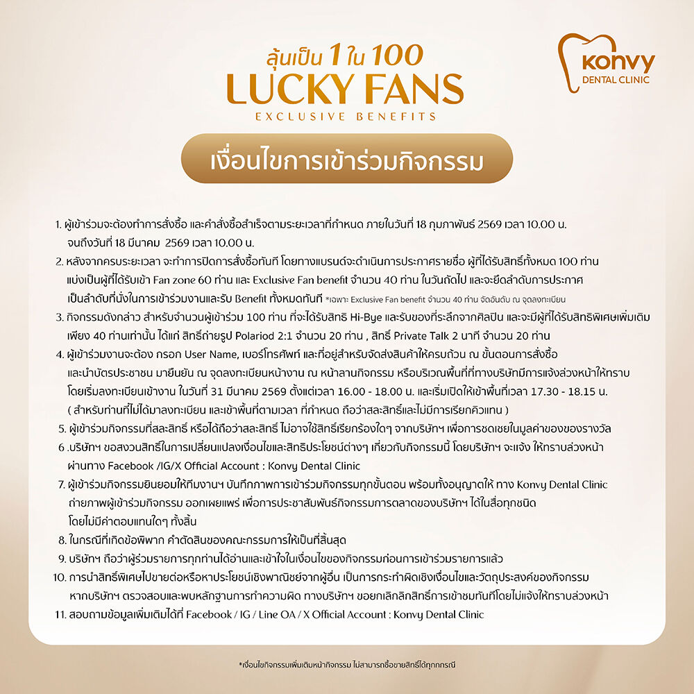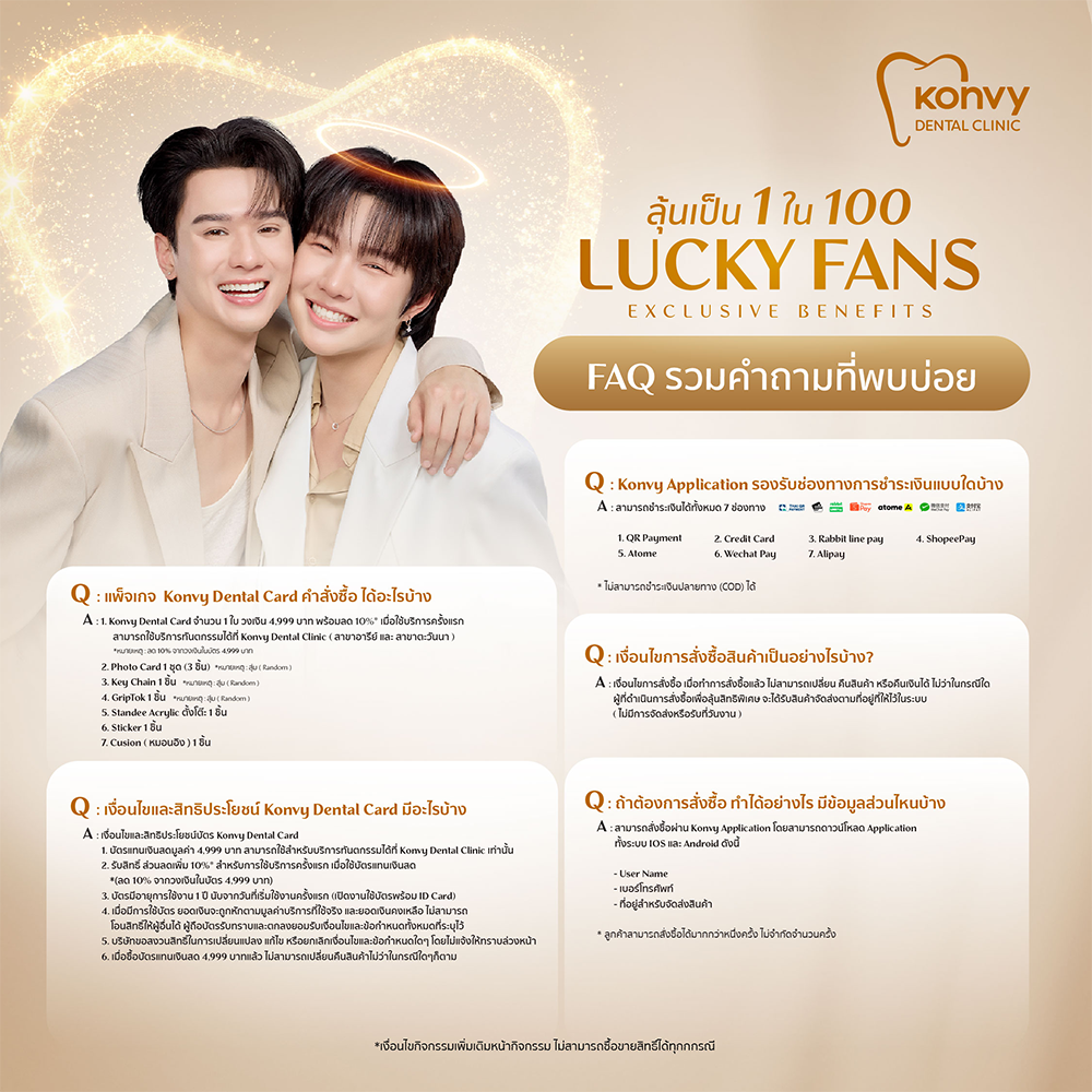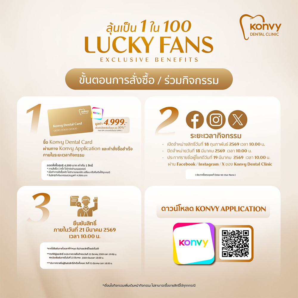 • Konvy Dental Card 1 ใบ (สุ่มลาย) รับสิทธิ์ทำทันตกรรม 4,999 บาท