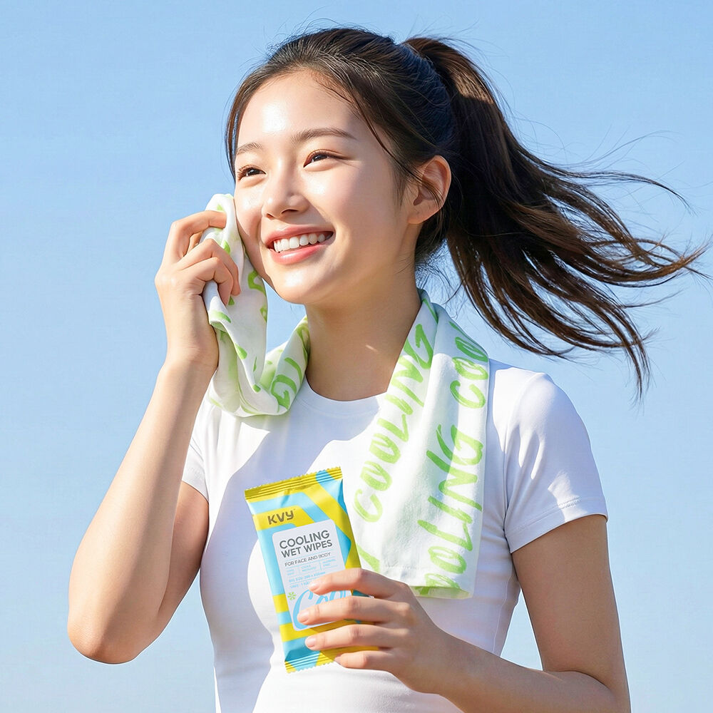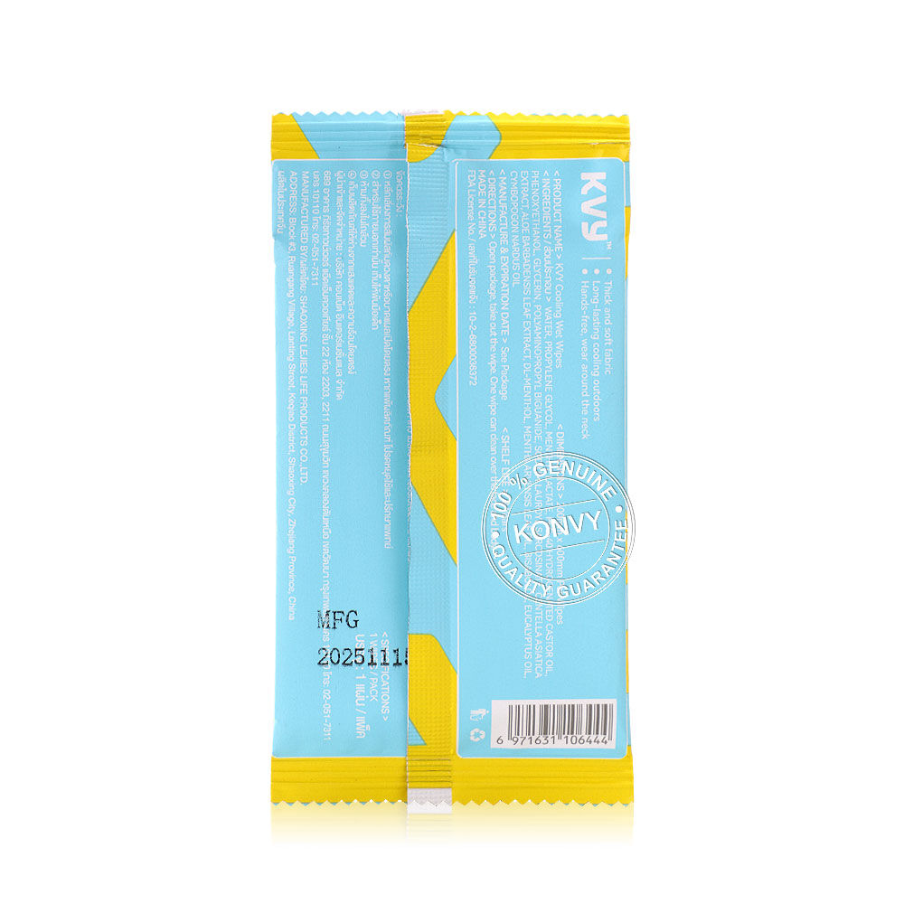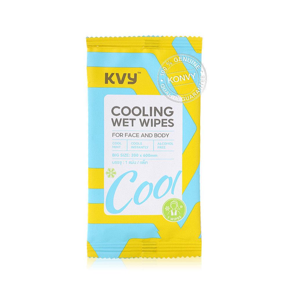 KVY Cooling Wet Wipes 1 Sheet #Mint แผ่นเช็ดทำความสะอาดผิวหน้าและผิวกาย สูตรมินท์ ด้วยเทคโนโลยีความเย็นที่ให้ความรู้สึก Cools Instantly และช่วยลดอุณหภูมิร่างกายทันทีที่เช็ด ทำให้คุณรู้สึกสดชื่นเหมือนเพิ่งอาบน้ำใหม่ๆ เหมาะสำหรับเช็ดทำความสะอาดผิวหน้าและผิวกาย เพื่อเช็ดเหงื่อ สิ่งสกปรก และความมันส่วนเกินหลังกิจกรรมต่างๆ หรือในวันที่อากาศร้อนจัด
