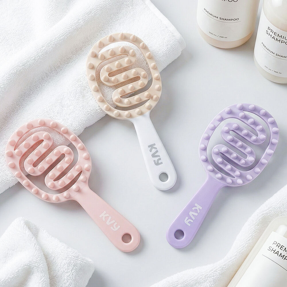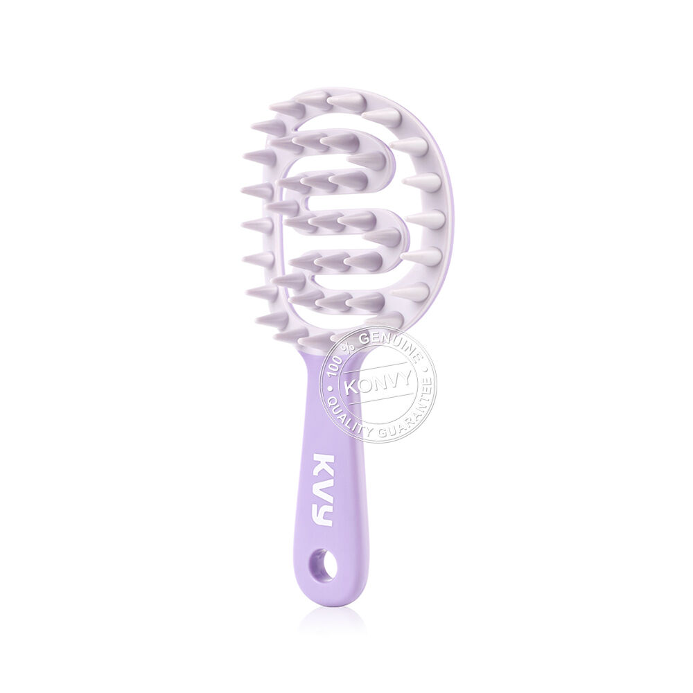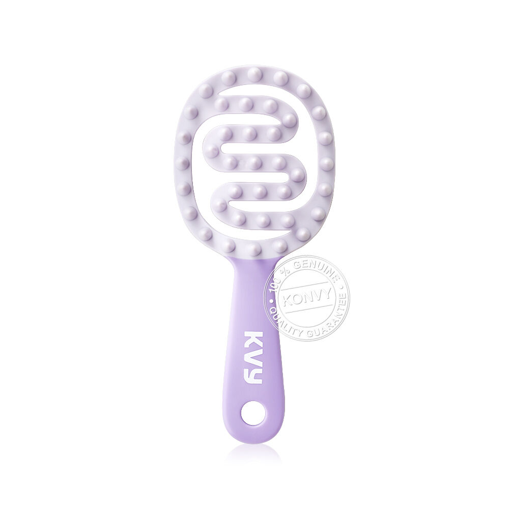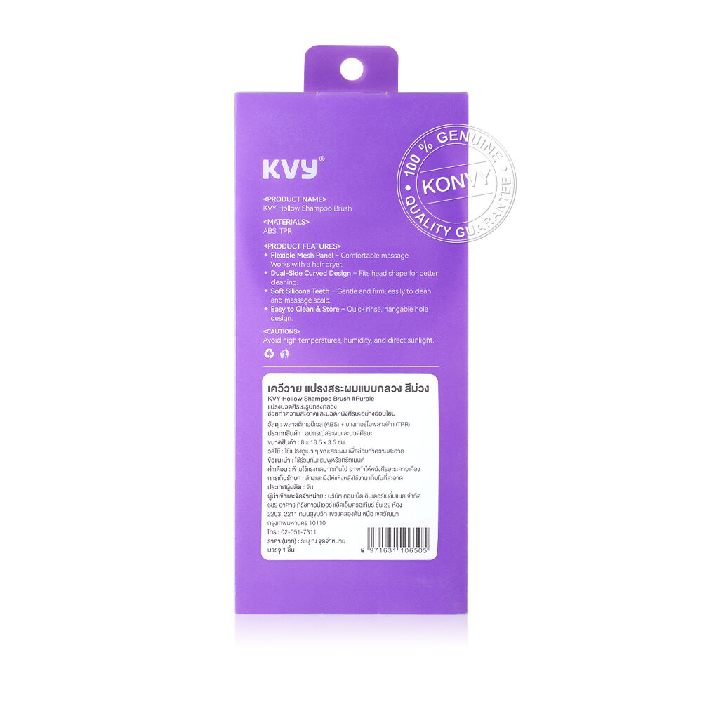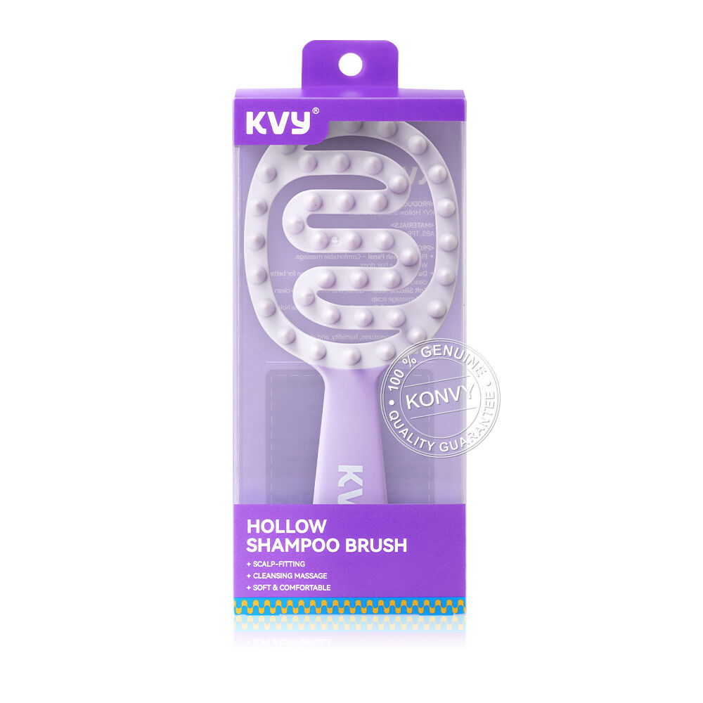 KVY Hollow Shampoo Brush #Purple แปรงสระผมสีม่วง โดดเด่นด้วยดีไซน์แบบโปร่ง (Hollow Design) ช่วยให้สามารถระบายน้ำและอากาศได้ดี มาพร้อมซิลิโคนนุ่มถนอมหนังศีรษะ และทำความสะอาดได้อย่างหมดจด ให้การสระผมของคุณสะอาดกว่าที่เคย มอบความผ่อนคลายเสมือนได้ทำสปาผมเองที่บ้าน