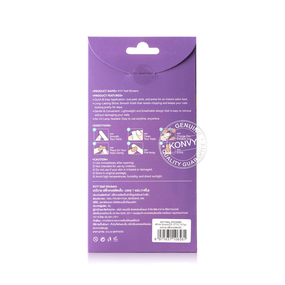 KVY Nail Stickers 14Tips #X-3774 Pink Stripes สติกเกอร์ติดเล็บ ลาย Pink Stripes ติดง่าย แห้งไว เงางาม ทนทาน โดยไม่ต้องใช้น้ำยาเคลือบหรือเครื่องอบ UV Lamp ให้คุณคอมพลีทเล็บสวยระดับซาลอนได้อย่างรวดเร็วและง่ายดายด้วยตัวเอง พร้อมสร้างลุคแฟชั่นที่สะดุดตาและมีสไตล์ได้ทุกวัน