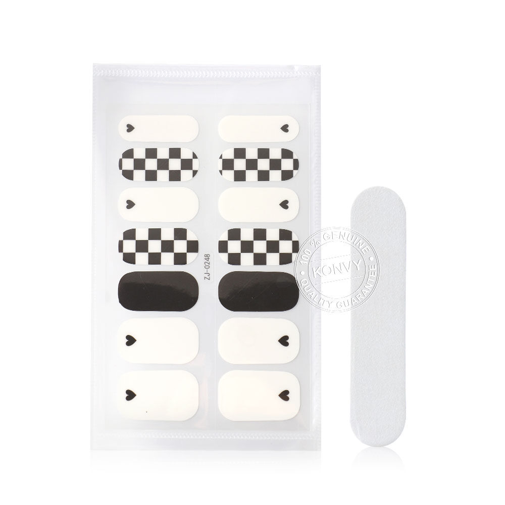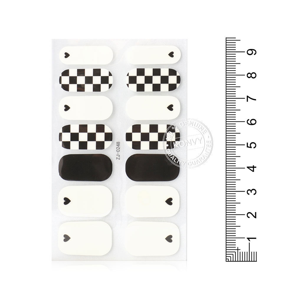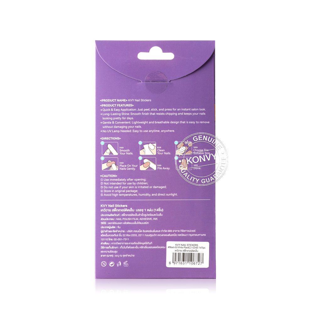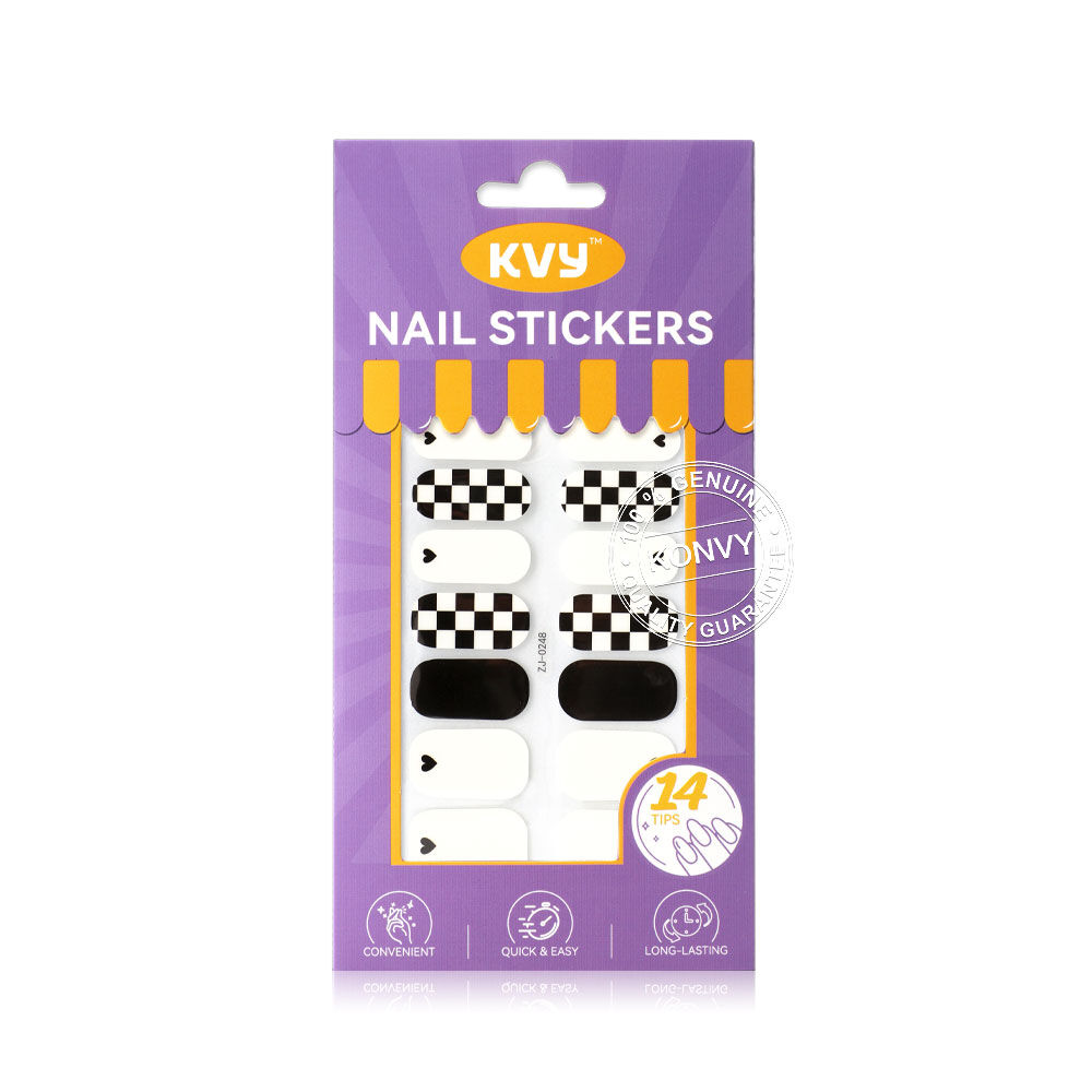 KVY Nail Stickers 14Tips #ZJ-0248 Black & White Plaid สติกเกอร์ติดเล็บ ลาย Black & White Plaid ติดง่าย แห้งไว เงางาม ทนทาน โดยไม่ต้องใช้น้ำยาเคลือบหรือเครื่องอบ UV Lamp ให้คุณคอมพลีทเล็บสวยระดับซาลอนได้อย่างรวดเร็วและง่ายดายด้วยตัวเอง พร้อมสร้างลุคแฟชั่นที่สะดุดตาและมีสไตล์ได้ทุกวัน