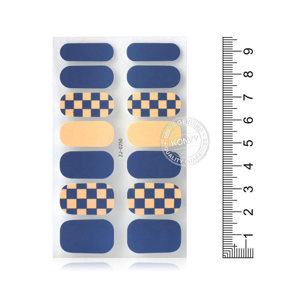 KVY Nail Stickers 14Tips #ZJ-0250 Matte Blue Plaid สติกเกอร์ติดเล็บ ลาย Matte Blue Plaid ติดง่าย แห้งไว เงางาม ทนทาน โดยไม่ต้องใช้น้ำยาเคลือบหรือเครื่องอบ UV Lamp ให้คุณคอมพลีทเล็บสวยระดับซาลอนได้อย่างรวดเร็วและง่ายดายด้วยตัวเอง พร้อมสร้างลุคแฟชั่นที่สะดุดตาและมีสไตล์ได้ทุกวัน