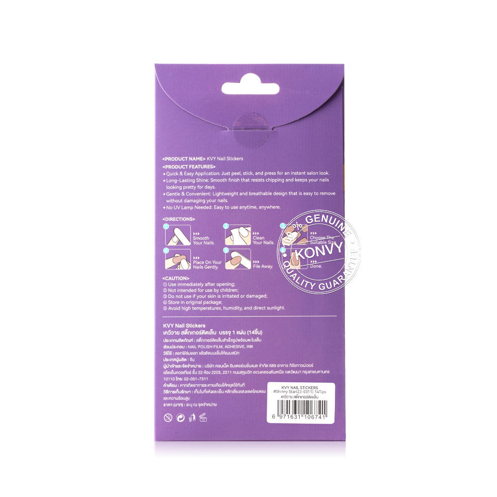 KVY Nail Stickers 14Tips #ZJ-0311 Shinny Star สติกเกอร์ติดเล็บ ลาย Shinny Star ติดง่าย แห้งไว เงางาม ทนทาน โดยไม่ต้องใช้น้ำยาเคลือบหรือเครื่องอบ UV Lamp ให้คุณคอมพลีทเล็บสวยระดับซาลอนได้อย่างรวดเร็วและง่ายดายด้วยตัวเอง พร้อมสร้างลุคแฟชั่นที่สะดุดตาและมีสไตล์ได้ทุกวัน