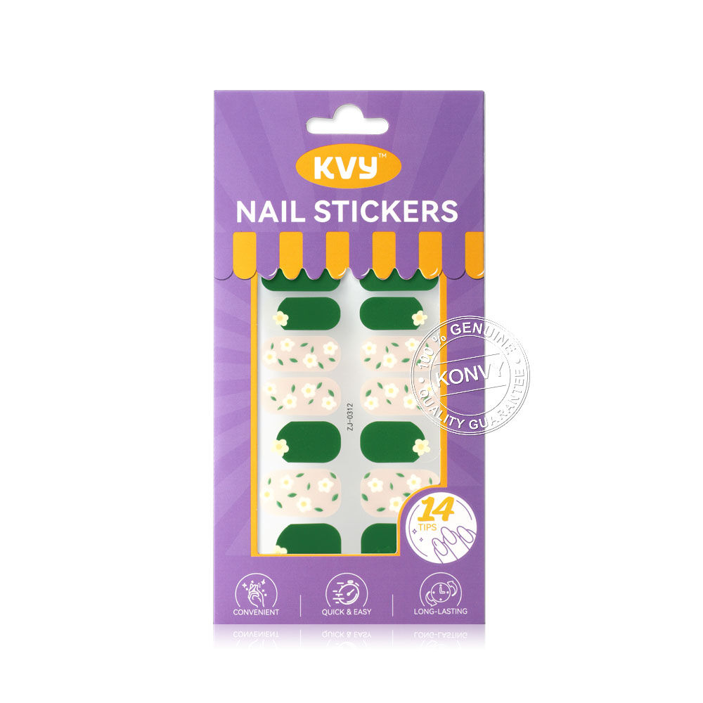 KVY Nail Stickers 14Tips #ZJ-0312 Green Floral สติกเกอร์ติดเล็บ ลาย Green Floral ติดง่าย แห้งไว เงางาม ทนทาน โดยไม่ต้องใช้น้ำยาเคลือบหรือเครื่องอบ UV Lamp ให้คุณคอมพลีทเล็บสวยระดับซาลอนได้อย่างรวดเร็วและง่ายดายด้วยตัวเอง พร้อมสร้างลุคแฟชั่นที่สะดุดตาและมีสไตล์ได้ทุกวัน