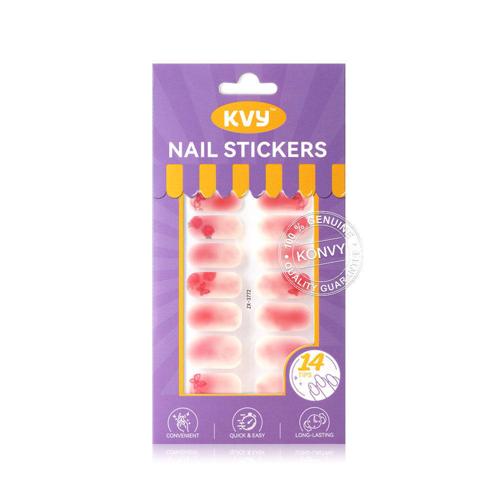 KVY Nail Stickers 14Tips #ZX-3772 Pink Roses สติกเกอร์ติดเล็บ ลาย Pink Roses ติดง่าย แห้งไว เงางาม ทนทาน โดยไม่ต้องใช้น้ำยาเคลือบหรือเครื่องอบ UV Lamp ให้คุณคอมพลีทเล็บสวยระดับซาลอนได้อย่างรวดเร็วและง่ายดายด้วยตัวเอง พร้อมสร้างลุคแฟชั่นที่สะดุดตาและมีสไตล์ได้ทุกวัน
