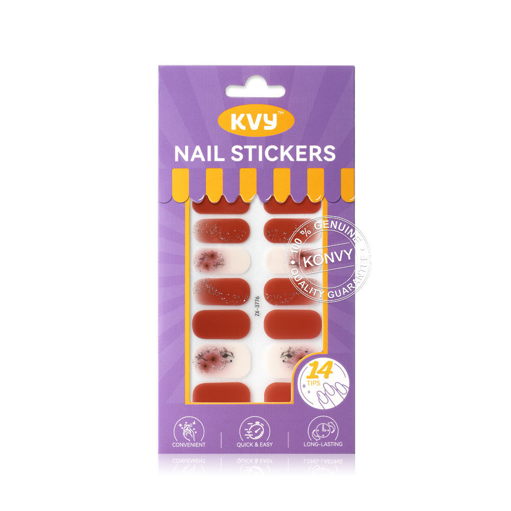 KVY Nail Stickers 14Tips #ZX-3776 Cinnamon Glitter สติกเกอร์ติดเล็บ ลาย Cinnamon Glitter ติดง่าย แห้งไว เงางาม ทนทาน โดยไม่ต้องใช้น้ำยาเคลือบหรือเครื่องอบ UV Lamp ให้คุณคอมพลีทเล็บสวยระดับซาลอนได้อย่างรวดเร็วและง่ายดายด้วยตัวเอง พร้อมสร้างลุคแฟชั่นที่สะดุดตาและมีสไตล์ได้ทุกวัน