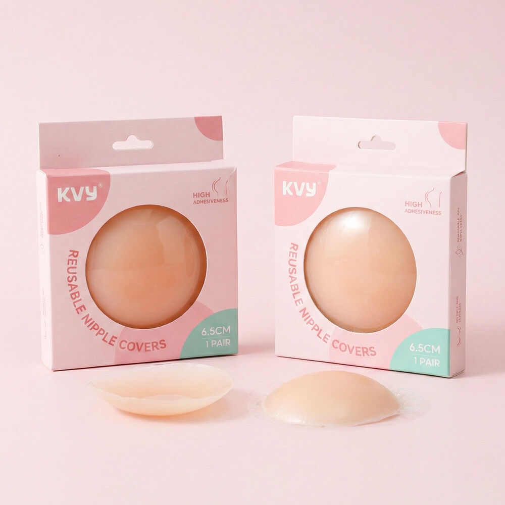 KVY Reusable Nipple Covers 6.5cm #Nude ซิลิโคนปิดจุกสีนู้ด ขนาด 6.5 ซม. ผลิตด้วยซิลิโคนและกาวเกรดการแพทย์ อ่อนโยนต่อผิว ดีไซน์ขอบบางเป็นพิเศษเพื่อให้เนียนเรียบไปกับผิว ไม่มีรอยขอบให้กวนใจ ออกแบบมาเพื่อเพิ่มความมั่นใจในการแต่งตัว และสามารถทำความสะอาดเพื่อนำกลับมาใช้ซ้ำได้หลายครั้ง