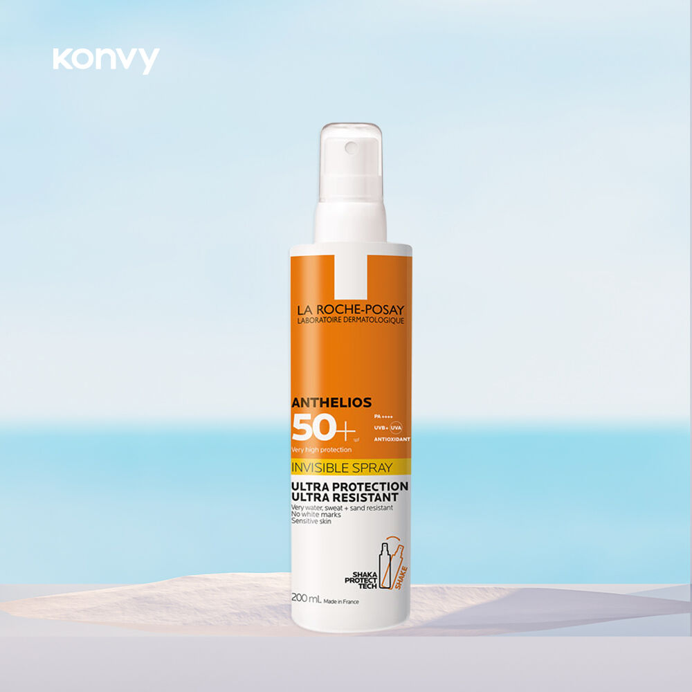 La Roche Posay Anthelios Invisible Spray SPF50+ PA++++ 200ml สเปรย์กันแดดสูตรบางเบา ไม่เหนียวเหนอะหนะ สามารถใช้ได้ทั้งผิวหน้าและผิวตัว ปกป้องผิวจากการถูกทำร้ายของ รังสี UVA และ UVB แสงอินฟราเรด และมลภาวะ มีค่าการปกป้องสูงถึง SPF50+ เป็นสูตรกันน้ำ กันเหงื่อ กันทราย ไม่เหนียวเหนอะหนะ ไม่ทิ้งคราบขาว ผ่านการทดสอบภายใต้การควบคุมโดยผู้เชี่ยวชาญด้านผิวพรรณ