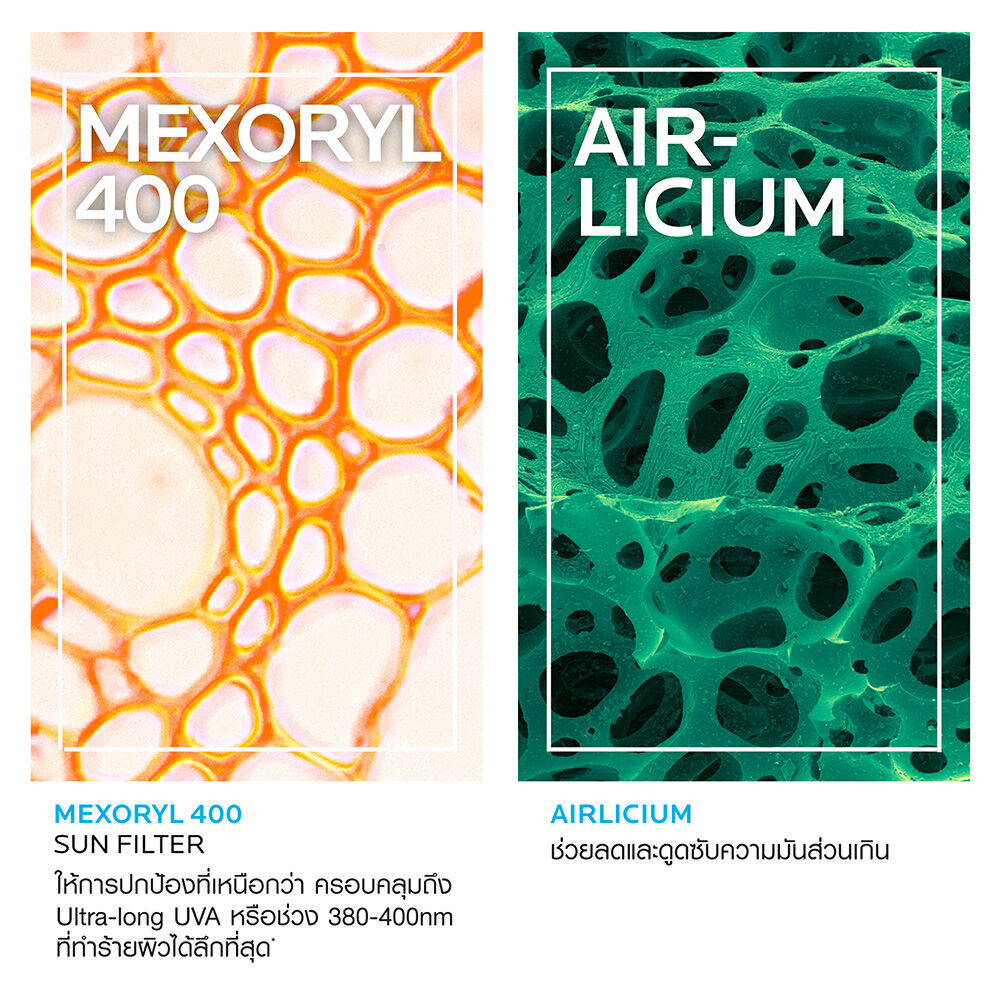 • ด้วย Mexoryl 400 เทคโนโลยีล่าสุดของลาโรช โพเซย์ ที่ให้การปกป้องได้เหนือกว่า
