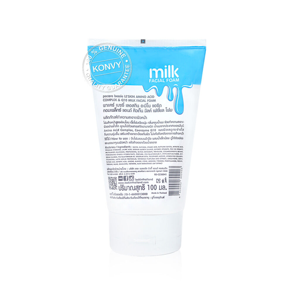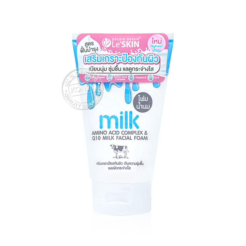 Le'SKIN Amino Acid Complex & Q10 Milk Facial Foam 100ml โฟมล้างหน้าสูตรอ่อนโยน เนื้อโฟมเนียนนุ่ม กลิ่นหอมน้ำนม ช่วยทำความสะอาดผิวอย่างล้ำลึก อุดมไปด้วยสารสกัดนานาชนิด น้ำนมจากประเทศเยอรมัน, Amino Acid Complex และ Coenzyme Q10 เผยผิวแลดูกระจ่างใส คืนความชุ่มชื้น เสริมสร้างเกราะป้องกันผิว ไม่แห้งตึงหลังจากการล้างหน้า